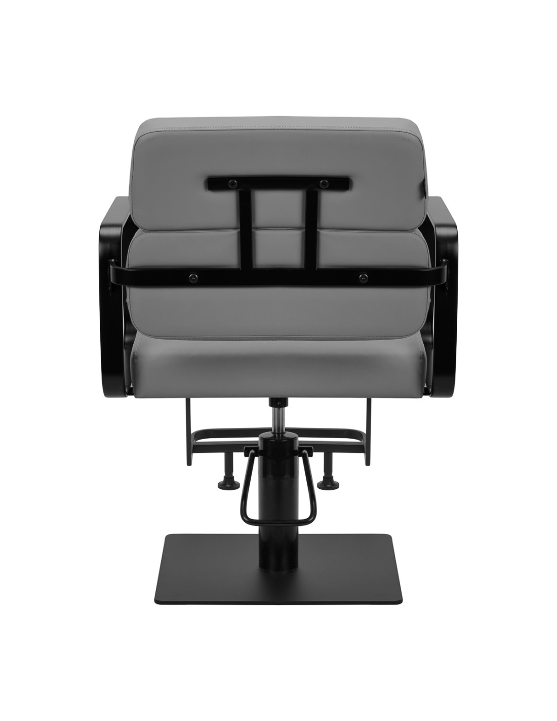 Ilmeccanismo di rotazione completa di cui è dotata la poltrona rende il lavoro del parrucchiere più efficiente e confortevole. La solida base piatta di forma quadrata garantisce stabilità durante l'uso. La superficie liscia e opaca conferisce al pezzo un aspetto elegante e lo rende facile da mantenere pulito. La comoda seduta con imbottitura in schiuma assicura un elevato livello di comfort, anche durante le lunghe ore di utilizzo. I braccioli geometrici in metallo consentono di posizionare correttamente le spalle del cliente, evitando che si chiuda la testa tra le braccia o si inarchi, facilitando notevolmente l 'esecuzione di trattamenti di precisione, compresi i tagli di capelli. L'elegante poggiapiedi dedicato a questo modello fornisce un supporto stabile per i piedi dell'utente.