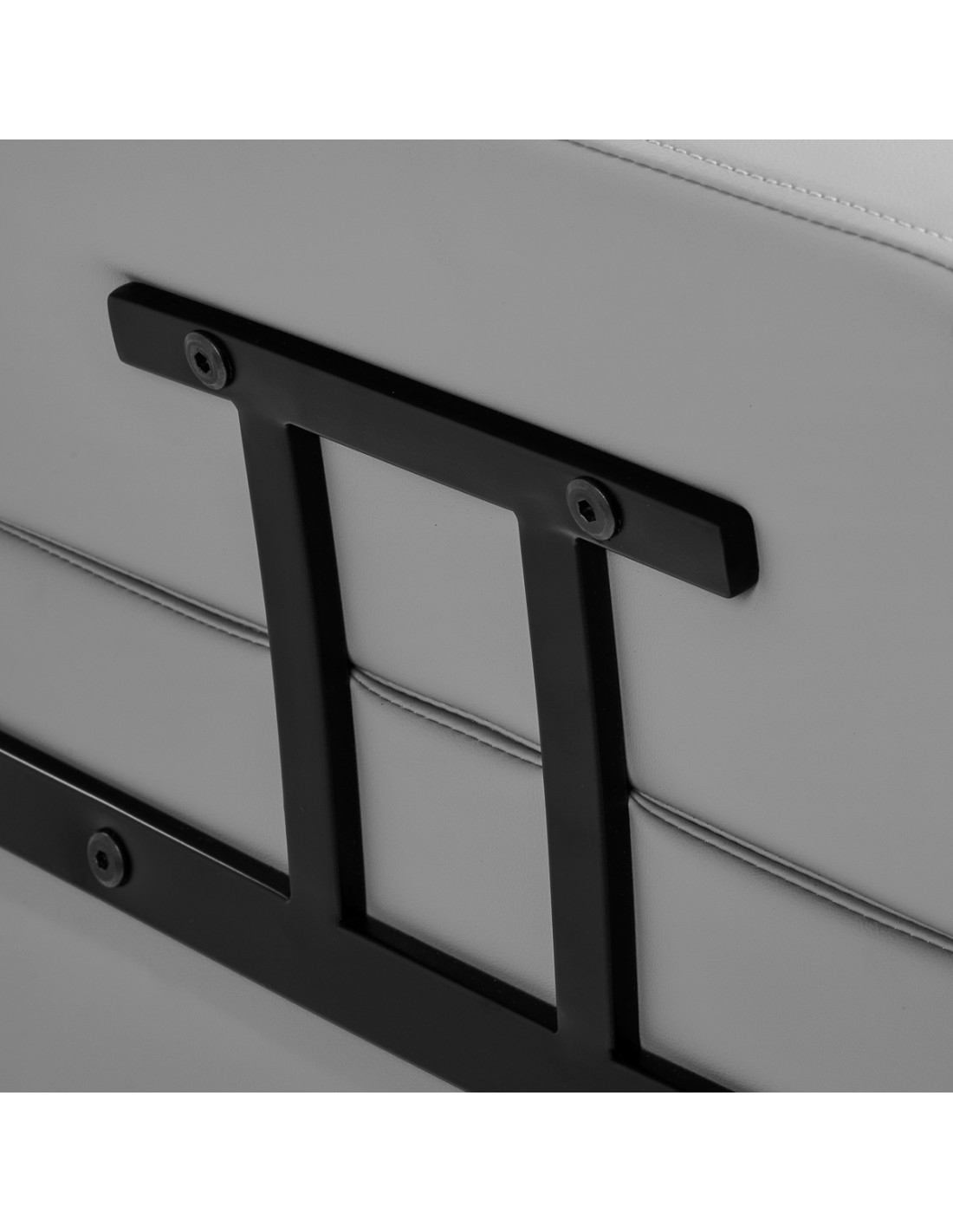L'imbottitura in schiuma durevole e resistente alla deformazione e il rivestimento in pelle sintetica piacevole al tatto garantiscono la durata del mobile e il suo utilizzo confortevole per lungo tempo. Inoltre, lo rendono resistente all'umidità, durevole e facile da pulire. Il rivestimento nei toni del grigio conferisce un carattere unico. L'attrezzatura si distingue per il suo design moderno, che fa sì che la poltrona faccia bella mostra di sé in molti saloni professionali.