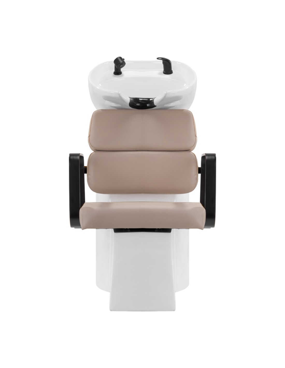 Il pratico lavatesta è dotato di un miscelatore che consente di accedere liberamente all'acqua calda e fredda. In questo modo è facile regolare la temperatura in base alle preferenze del cliente. Un posto dedicato per mettere la cornetta rende il lavoro più efficiente, mentre una spina cromata con uno speciale filtro permette di controllare il flusso dell'acqua e di mantenere elevati standard igienici nel salone. L 'attacco dell'acqua è stato collocato all'interno della base, consentendo di nascondere efficacemente i tubi. Un vantaggio significativo di questo modello è il foro lasciato tra lo schienale e la seduta, che facilita il mantenimento della pulizia nel salone, consentendo di spazzare facilmente lo sporco da ogni angolo della poltrona. Il lavaggio è profilato in modo da assicurare il comfort durante i vari trattamenti, garantendo un adeguato sostegno alla schiena. La combinazione di funzionalità e comfort rende il lavoro in un salone da parrucchiere ancora più confortevole.