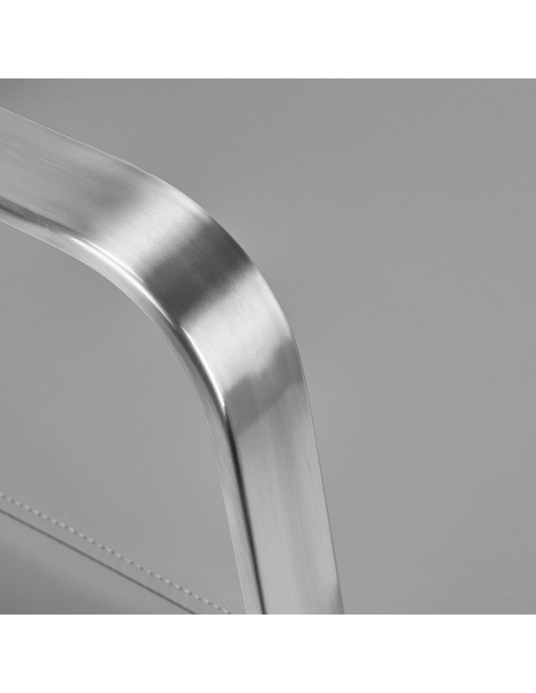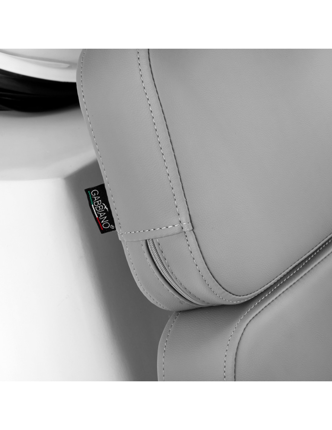 La poltrona profilata offre un adeguato supporto lombare e, di conseguenza, un elevato comfort di utilizzo. I braccioli in metallo con tonalità cromate e forma geometrica consentono un corretto posizionamento delle spalle del cliente. L'imbottitura in schiuma durevole e resistente alla deformazione e il rivestimento in pelle sintetica piacevole al tatto nei toni del grigio assicurano la durata del mobile, la facilità di pulizia e un uso confortevole per lungo tempo. Il design originale ed elegante dell'autolavaggio conferisce agli interni un'espressione unica. La dotazione completa di accessori in tonalità cromata comprende un miscelatore, una cornetta per la doccia e tubi flessibili dedicati per fornire un set completo di strumenti per il lavoro.