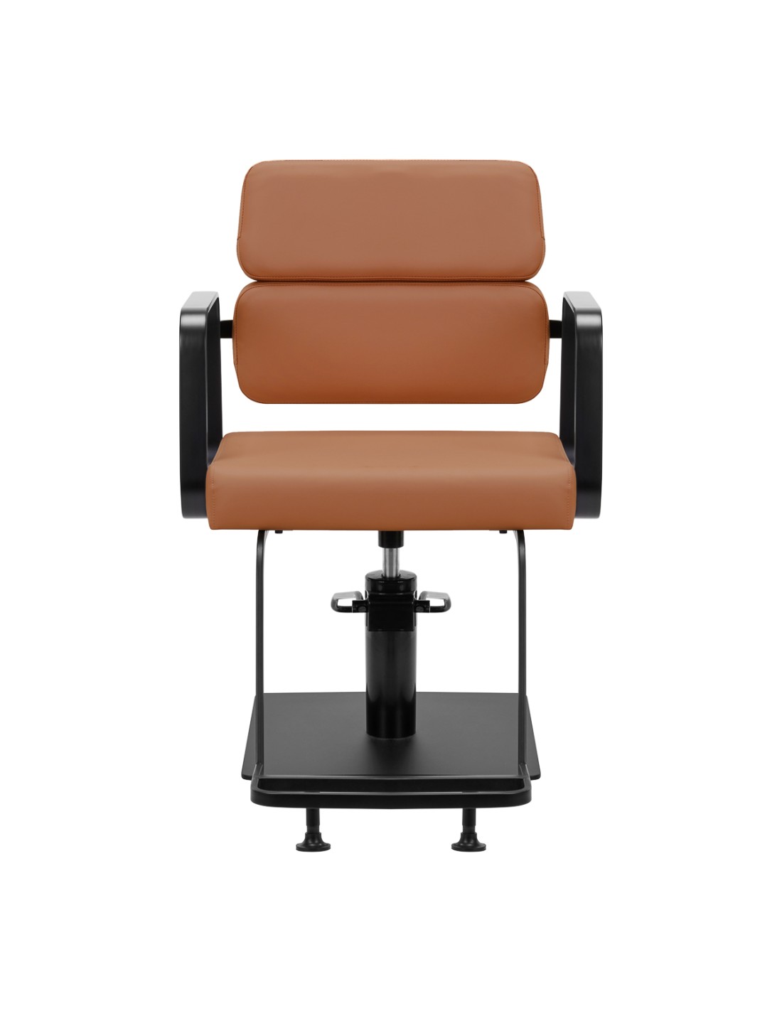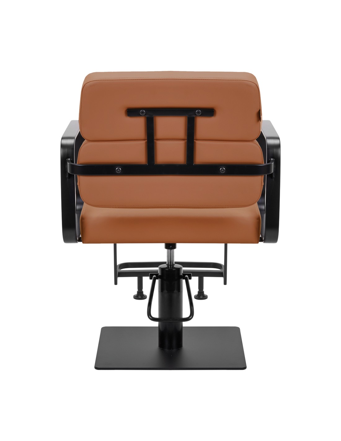 Ilmeccanismo di rotazione completa di cui è dotata la poltrona rende il lavoro del parrucchiere più efficiente e confortevole. La solida base piatta di forma quadrata garantisce stabilità durante l'uso. La superficie liscia e opaca conferisce al pezzo un aspetto elegante e lo rende facile da mantenere pulito. La comoda seduta con imbottitura in schiuma assicura un elevato livello di comfort, anche durante le lunghe ore di utilizzo. I braccioli geometrici in metallo in tonalità oro consentono di posizionare correttamente le spalle dei clienti, evitando che questi nascondano la testa tra le braccia o si inarchino, facilitando notevolmente l'esecuzione di trattamenti di precisione, compresi i tagli di capelli. L'elegante poggiapiedi dedicato a questo modello fornisce un supporto stabile per i piedi dell'utente.