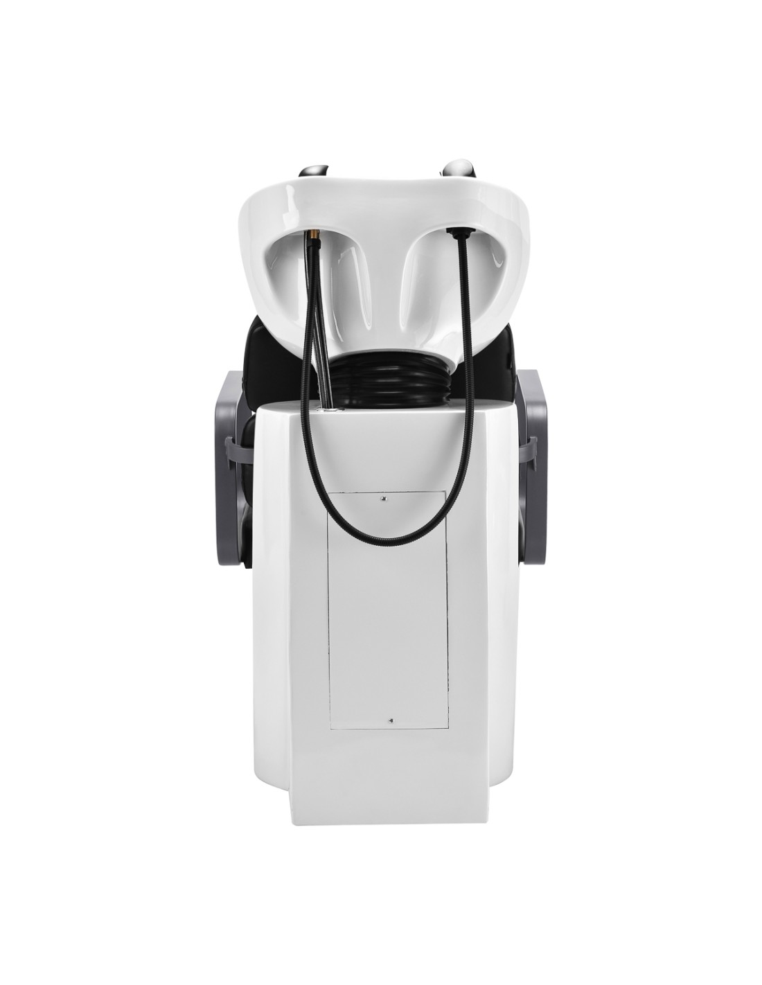 L'adeguata profondità del lavabo in ceramica bianca impedisce l'eccessivo schizzo dell' acqua o dei prodotti utilizzati durante i trattamenti. Ciò consente di eseguire un'ampia gamma di servizi in modo comodo ed efficiente. L'angolo della bacinella può essere regolato, rendendo facile la personalizzazione. L'alta qualità dei materiali utilizzati rende la bacinella durevole, resistente alle macchie e ai graffi e molto facile da pulire. La flangia opportunamente sagomata e lo schienale inclinato offrono sostegno e comfort durante il lavaggio dei capelli e, grazie al comodo rivestimento in plastica nei toni del nero, il cliente non si sentirà a disagio con la freddezza della superficie in ceramica.