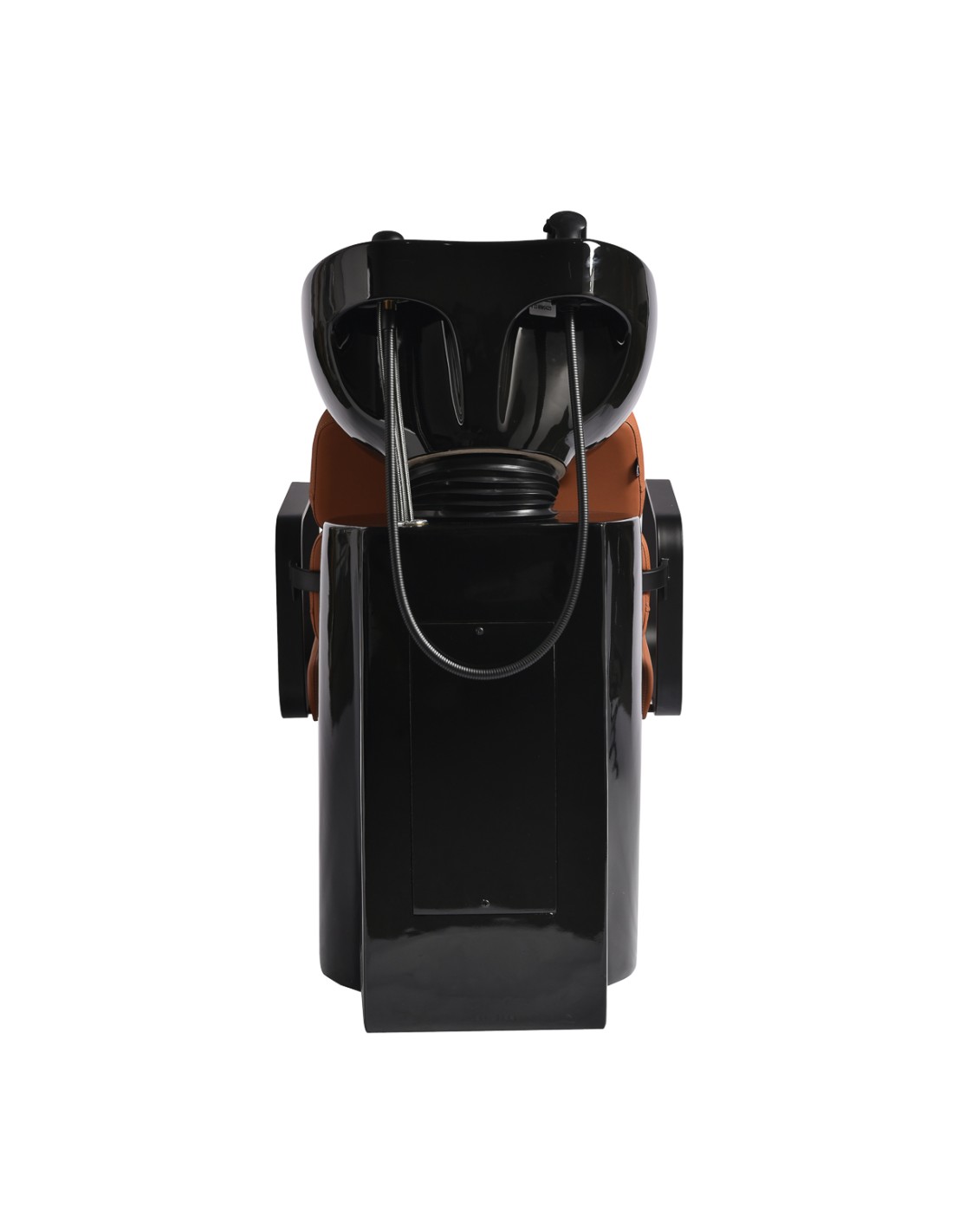 Il pratico lavatesta è dotato di un miscelatore che consente di accedere liberamente all'acqua calda e fredda. In questo modo è facile regolare la temperatura in base alle preferenze del cliente. Un posto dedicato per mettere la cornetta rende il lavoro più efficiente, mentre una spina cromata con uno speciale filtro permette di controllare il flusso dell'acqua e di mantenere elevati standard igienici nel salone. L 'attacco dell'acqua è stato collocato all'interno della base, consentendo di nascondere efficacemente i tubi. Un vantaggio significativo di questo modello è il foro lasciato tra lo schienale e la seduta, che facilita il mantenimento della pulizia nel salone, consentendo di spazzare facilmente lo sporco da ogni angolo della poltrona. Il lavaggio è profilato in modo da assicurare il comfort durante i vari trattamenti, garantendo un adeguato sostegno alla schiena. La combinazione di funzionalità e comfort rende il lavoro in un salone da parrucchiere ancora più confortevole.