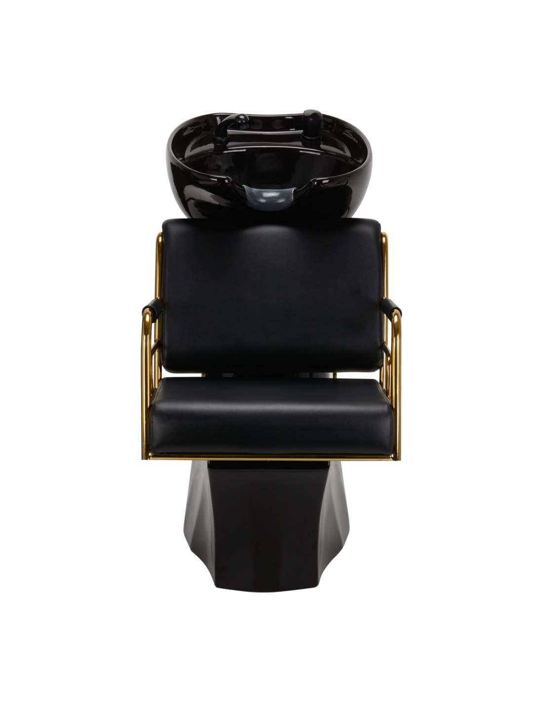 GABBIANOIl moderno lavabo per parrucchieri di Gabbiano è una combinazione di funkiness ed eleganza italiana. Il lavabo è realizzato con materiali di altissima qualità e perfettamente rifinito. Sappiamo quanto sia importante il comfort del cliente durante i trattamenti, quindi il design speciale fornisce al cliente un solido supporto per la testa durante il lavaggio. La seduta, morbida ed estremamente confortevole, è rivestita in ecopelle nera di alta qualità. Il lavabo ha una vasca in ceramica nera e braccioli in oro. Un mobile ideale per gli interni moderni. Gli elementi dorati sono verniciati. I danni meccanici al rivestimento non sono soggetti a reclami.