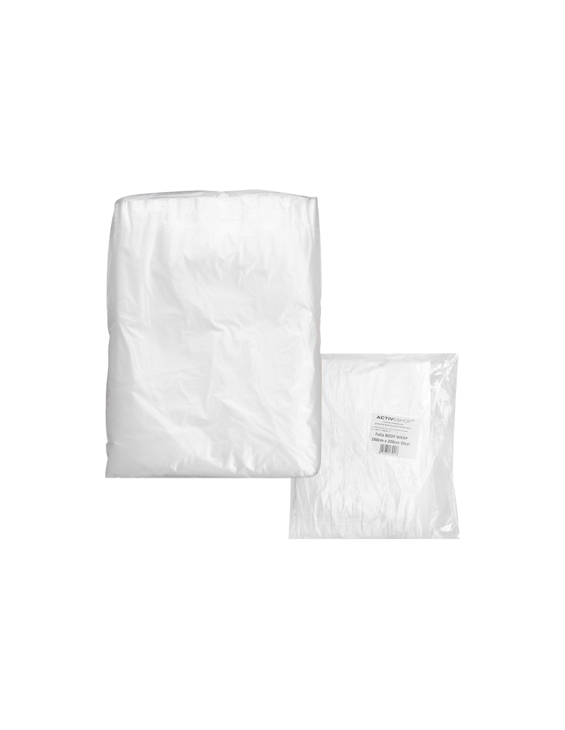 BODY WRAP Wrap 20 fogli 160cm x 200cm Foglio per termoterapia, utilizzato nei trattamenti di impacco per il corpo. Permette di trattenere più a lungo il calore e fa sì che le sostanze attive utilizzate durante il trattamento agiscano più intensamente, meglio e più in profondità nella pelle. Inoltre, protegge il lettino durante i trattamenti. La confezione contiene 20 fogli di dimensioni 160 cm x 200 cm.