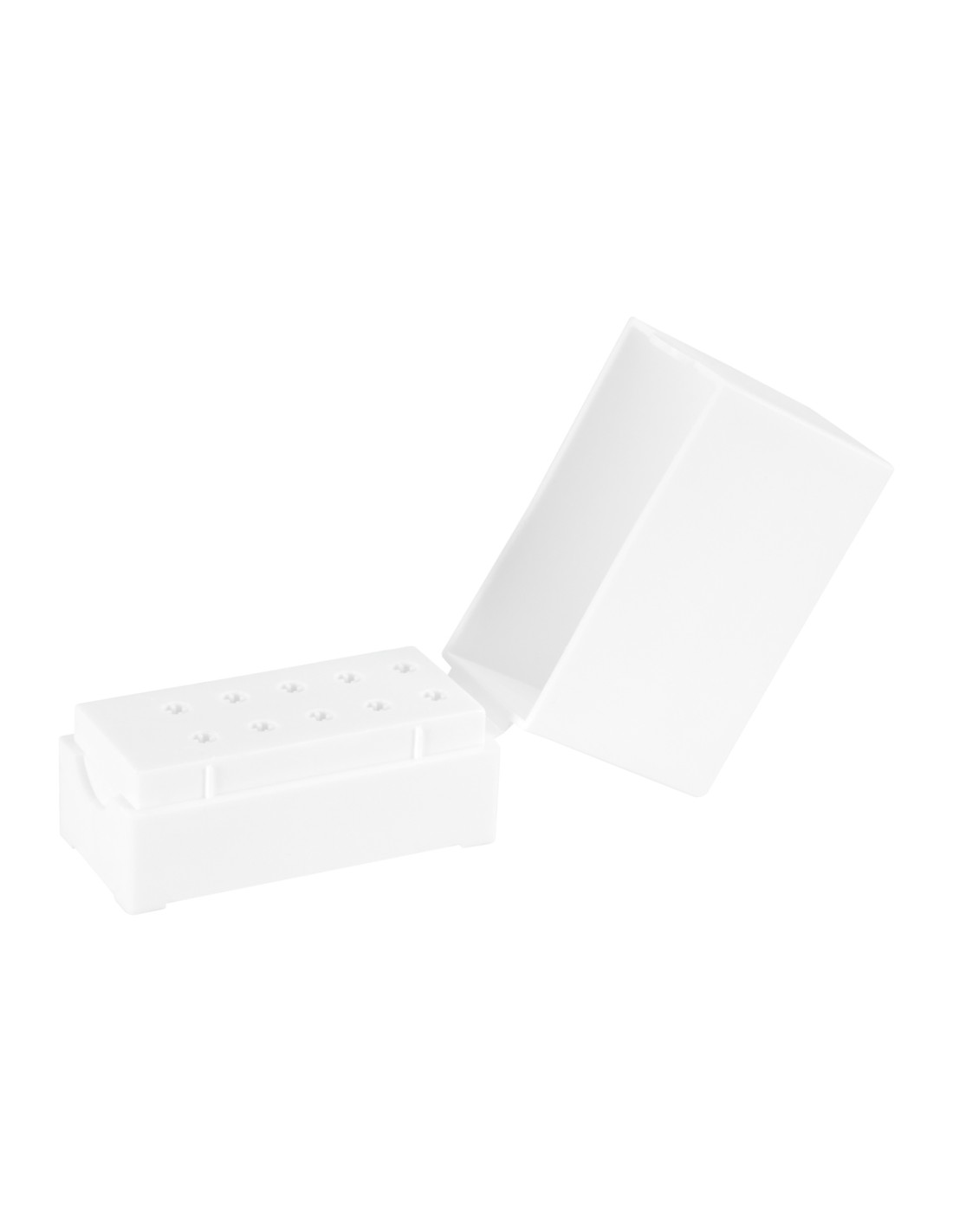 Il pratico supporto per frese EXO è dotato di 10 fori per riporre e organizzare facilmente le frese necessarie per la manicure. Il supporto in plastica con coperchio protegge dall'accumulo di polvere e altre impurità, mantenendo così l'igiene. Il supporto robusto e stabile manterrà gli strumenti per la manicure più ordinati e organizzati.