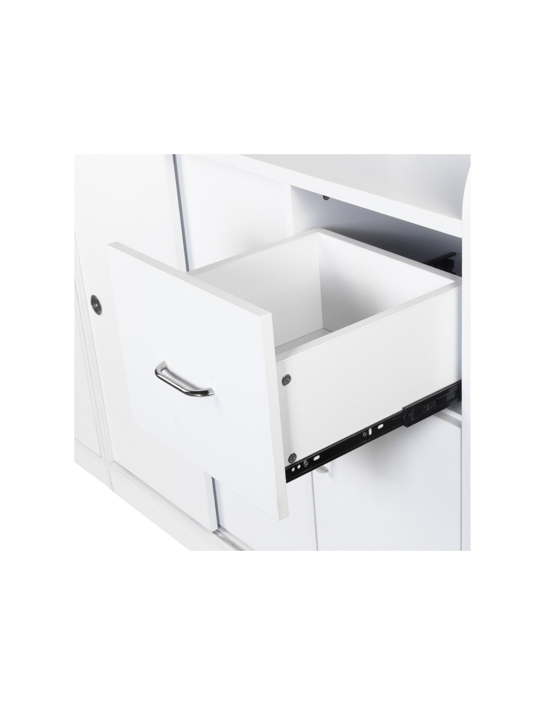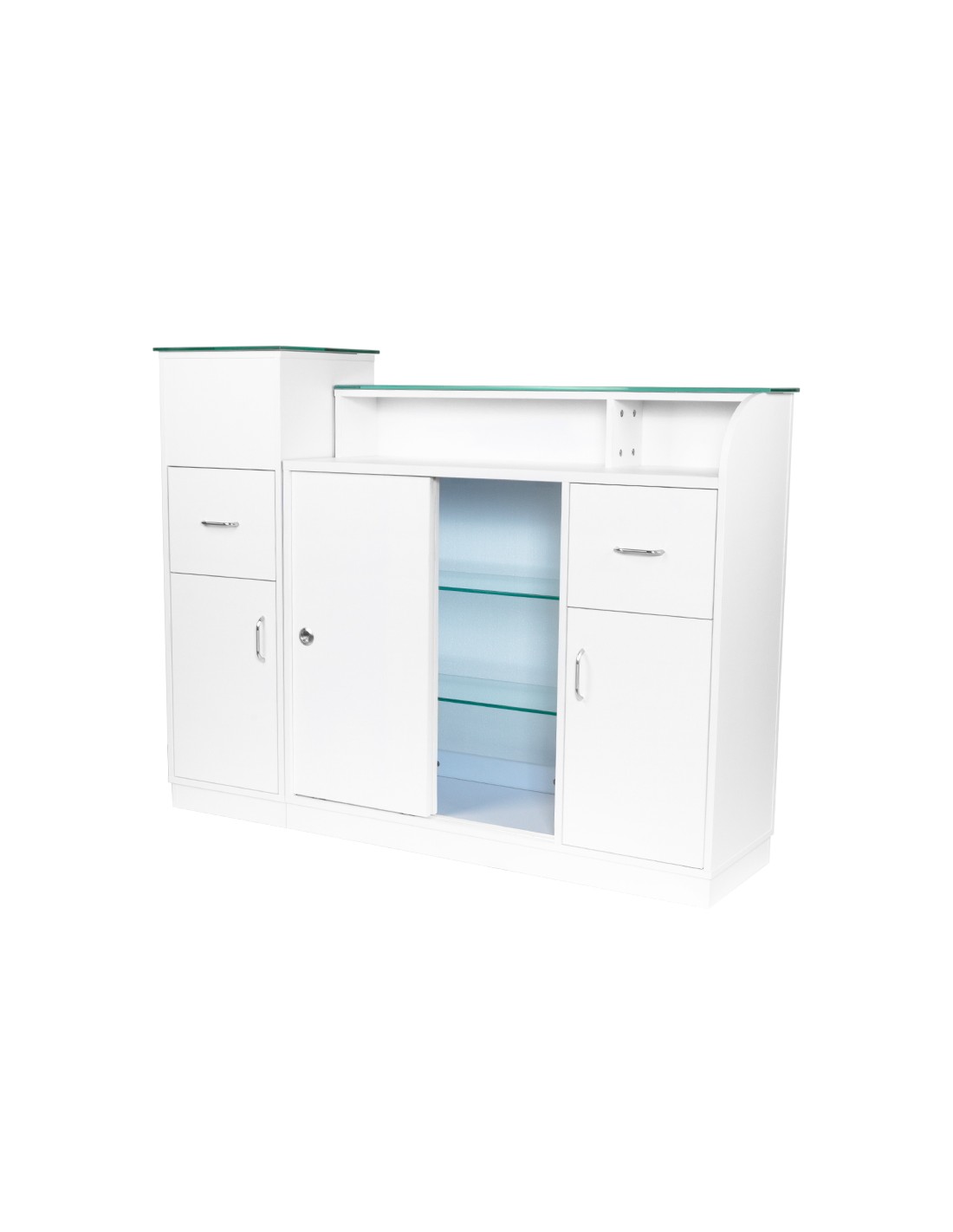 Il banco della reception: il pezzo forte del salone. È qui che ogni nuovo cliente arriva inizialmente. Sappiamo quanto sia importante la prima impressione. Vale la pena prendersene cura e far percepire a ogni visitatore del nostro salone un'atmosfera di lusso. Vi presentiamo il nuovo banco reception di Gabbiano. Il mobile è realizzato con materiali di altissima qualità e perfettamente rifinito. È dotato di armadietti e cassetti all'interno e di accesso alla parete centrale. Questo rende il banco reception molto spazioso e permette di tenere in ordine tutti i documenti importanti.