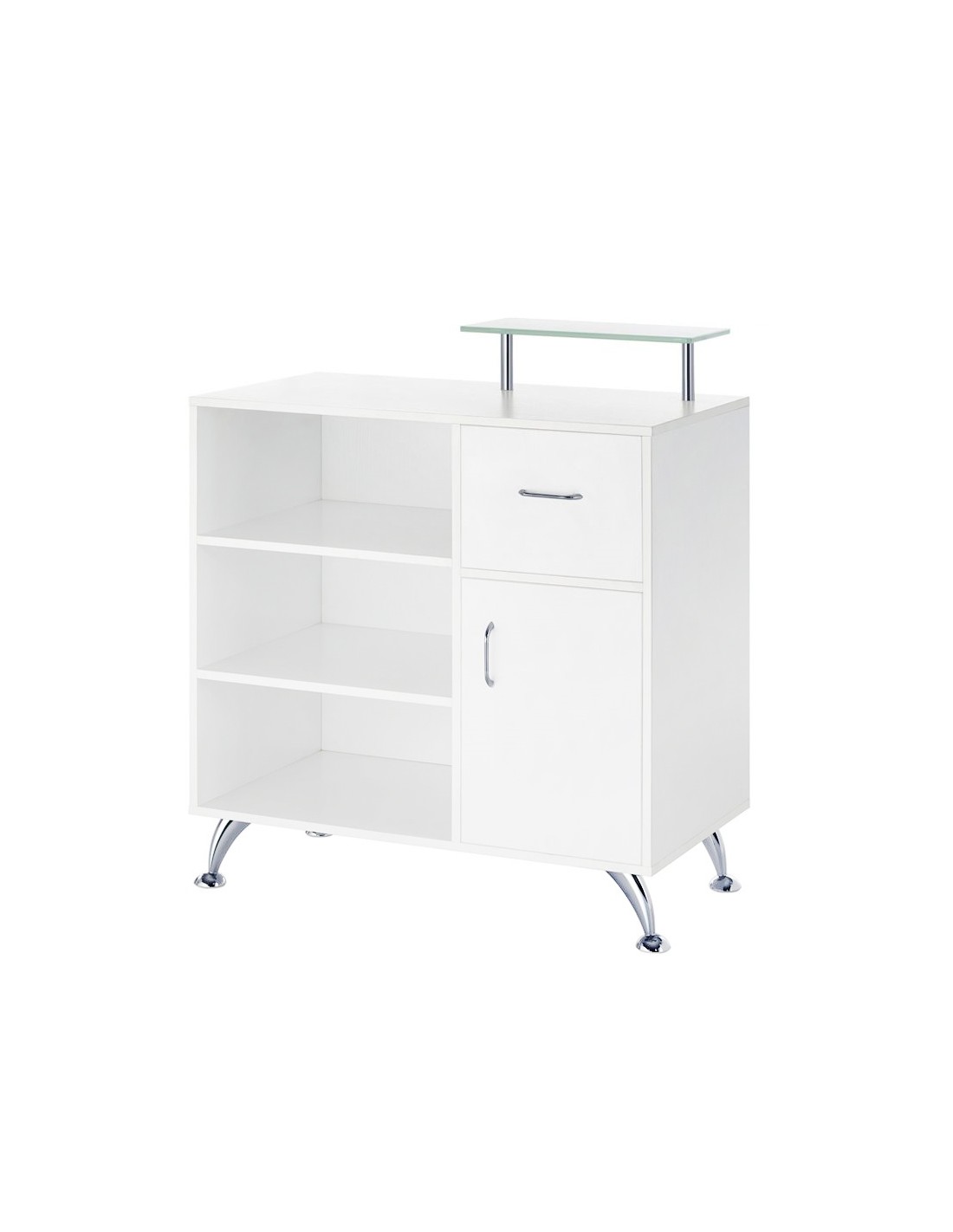 Il banco della reception: il pezzo forte del salone. È qui che ogni nuovo cliente arriva inizialmente. Sappiamo quanto sia importante la prima impressione. Vale la pena prendersene cura e far percepire a ogni visitatore del nostro salone un'atmosfera di lusso. Vi presentiamo il nuovo banco reception di Gabbiano. Il mobile è realizzato con materiali di altissima qualità e perfettamente rifinito. La parte interna presenta un mobile, un cassetto e tre ripiani. Il banco reception è relativamente piccolo, ma molto capiente. Può diventare il pezzo forte del vostro ufficio.