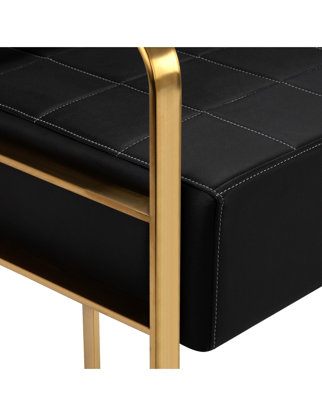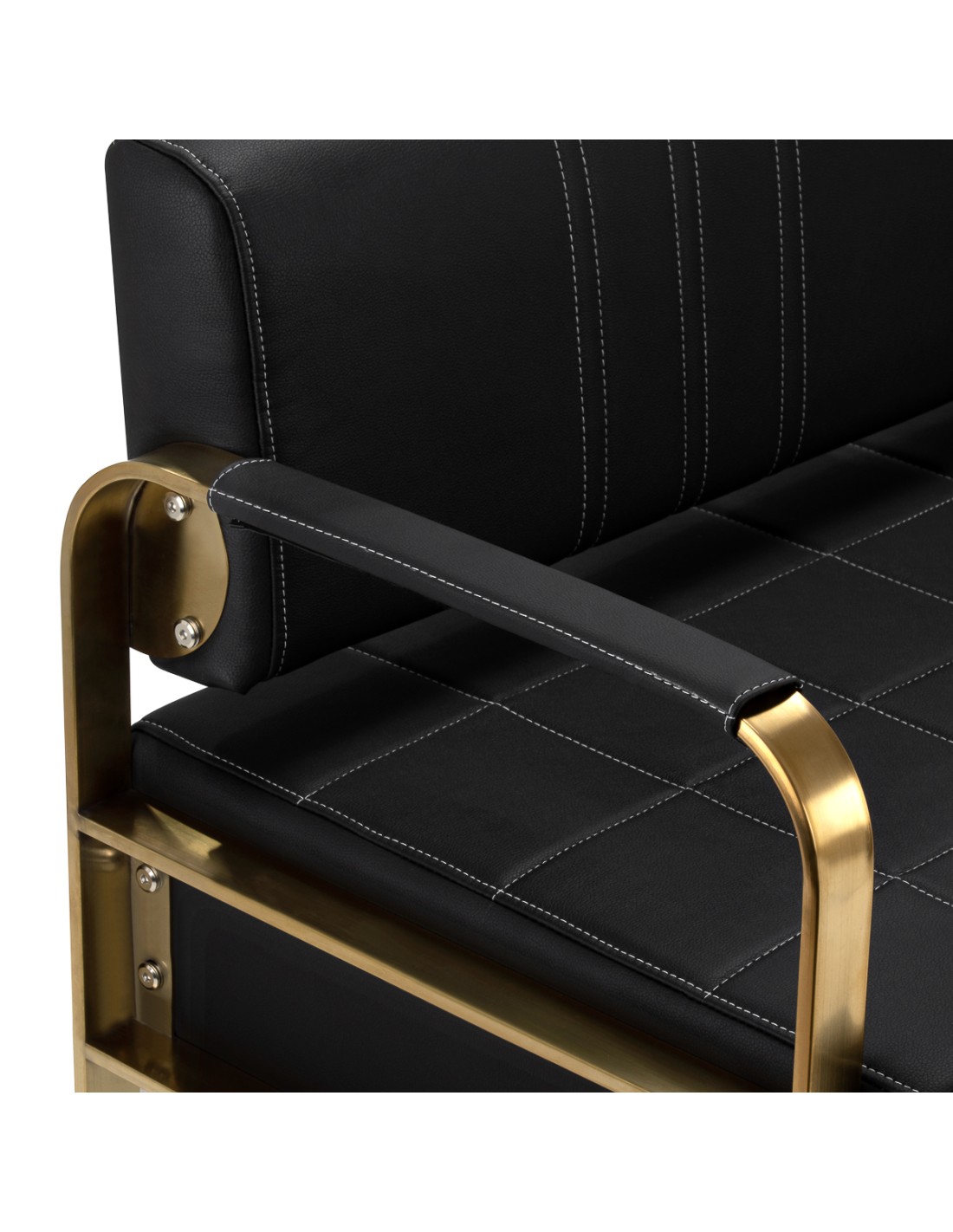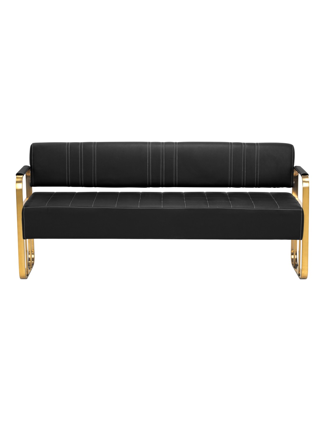 Il divano per sala d'attesa Avila è una combinazione di design moderno ed eleganza che attira l'attenzione. La forma minimalista, gli elementi dorati e le cuciture bianche accuratamente realizzate si adattano perfettamente all'estetica dei saloni di bellezza e parrucchieri di lusso.