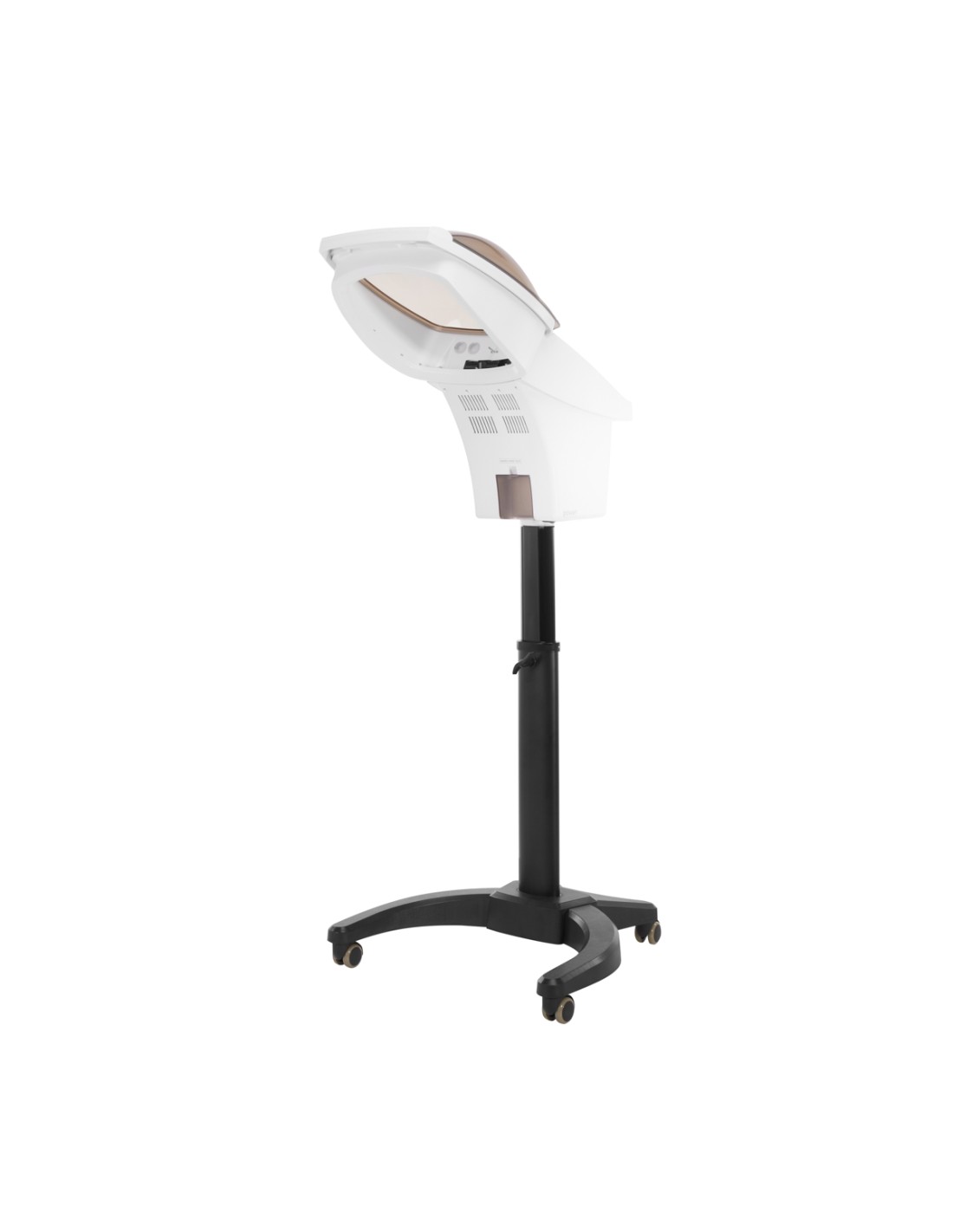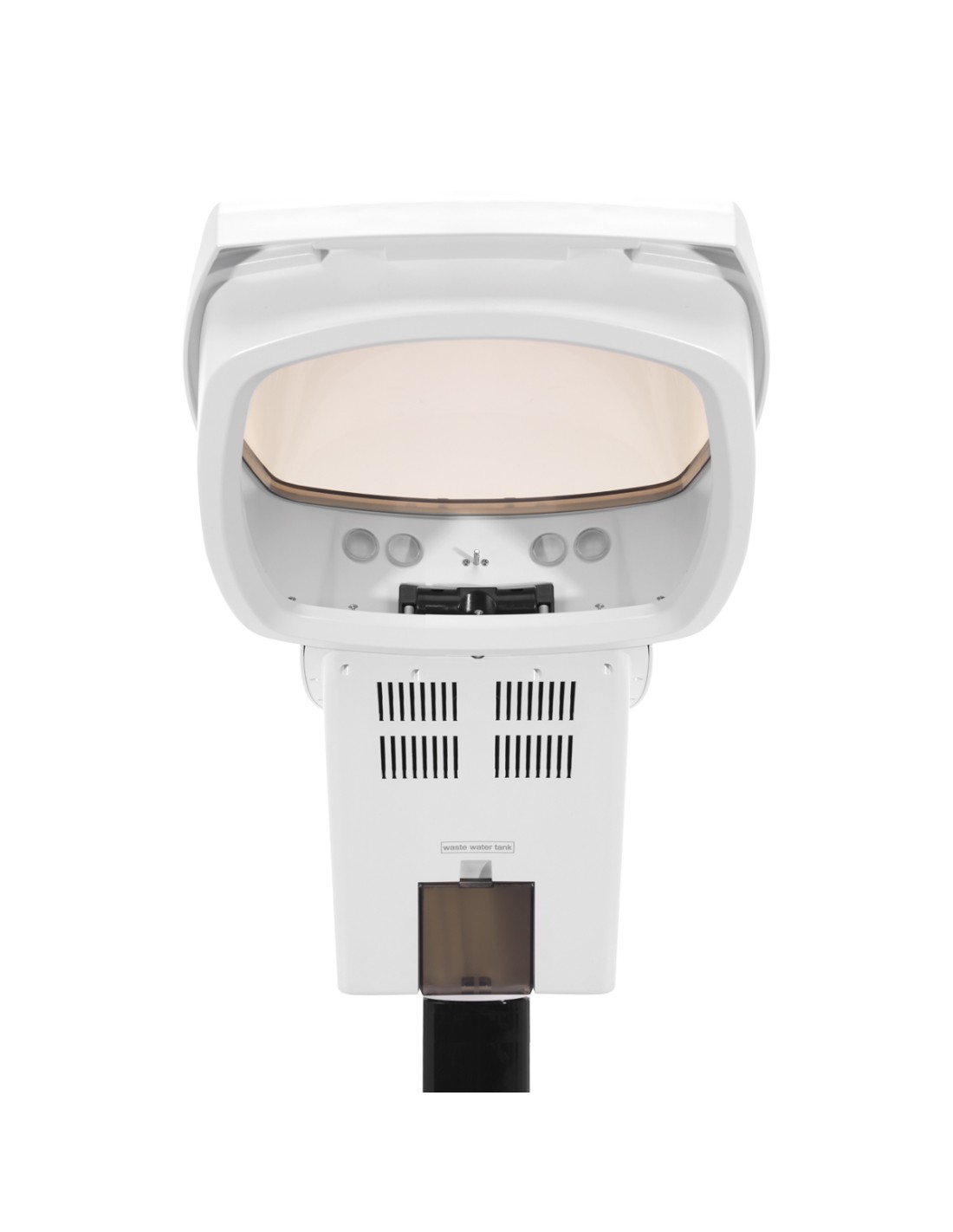 L'apparecchio, facile da usare, utilizza il vapore per il suo funzionamento, che facilita l'assorbimento delle sostanze per la cura dei capelli e li lascia morbidi e fortemente idratati. Il calore emesso dal vapore stimola la microcircolazione del cuoio capelluto e facilita il trasporto dei nutrienti essenziali. Ciò aumenta il comfort e la soddisfazione del cliente che si sottopone al trattamento. L'uso di questa soluzione ha anche un effetto benefico sul cuoio capelluto, con capelli più forti e meno inclini alla caduta. Il dispositivo è dotato di un serbatoio con una capacità di quasi due litri per l'acqua pulita e di un contenitore più piccolo per l'acqua che si condensa durante i trattamenti. La sauna è dotata di un sistema che segnala la mancanza di acqua nel serbatoio con un messaggio sullo schermo e un suono caratteristico. È inclusa anche una speciale cuffia con estrattore per facilitare l'erogazione del vapore sui capelli.