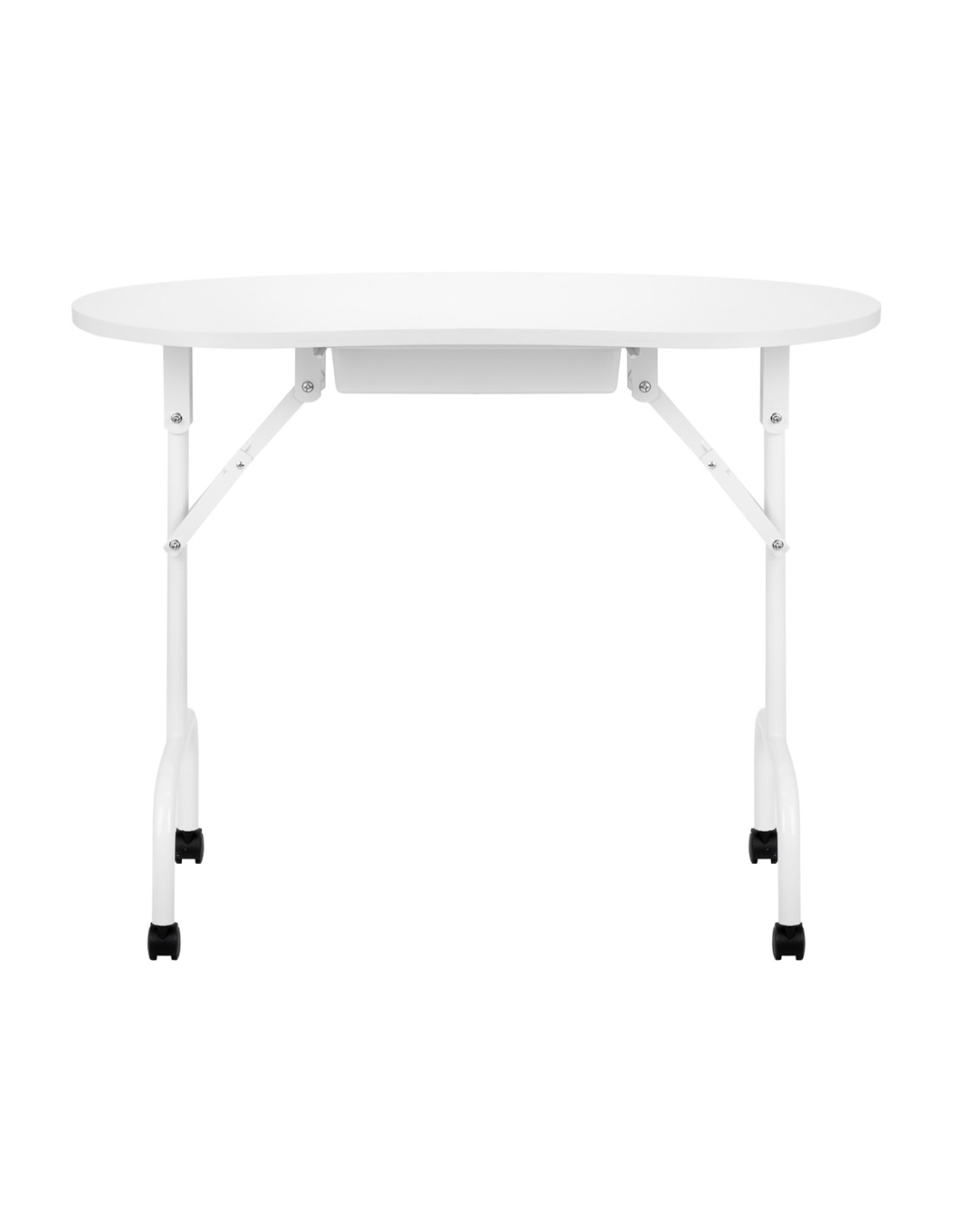 Le dimensioni ridotte del tavolo pieghevole consentono di riporre facilmente i mobili e di trasportarli comodamente, il che è fondamentale per i servizi mobili. Sotto il piano del tavolo c'è spazio per un cassetto in cui possono essere riposti tutti i prodotti e gli accessori più necessari. Il cassetto consente di accedere facilmente agli strumenti necessari durante il lavoro. Il cuscino per manicure rende i trattamenti più efficaci, consentendo alla cliente di assumere una posizione adeguata e confortevole. La scrivania è facile da piegare e contribuisce in modo significativo alla praticità. La robusta borsa per il trasporto inclusa nel set è ideale per trasportare il mobile, rendendolo facile da trasportare e proteggendolo da eventuali danni.