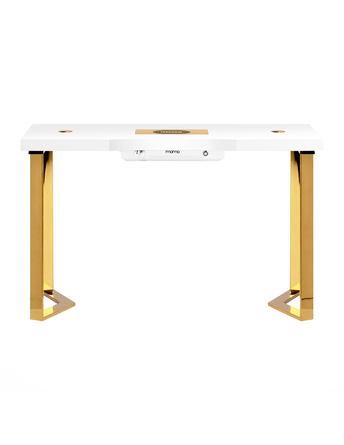 La scrivania cosmetica Momo 05 è una combinazione unica di semplicità e stile, progettata pensando agli utenti più esigenti. Il design minimalista con elementi dorati ne esalta il carattere elegante. Il piano liscio e lucido garantisce il comfort durante lo svolgimento delle attività quotidiane nel salone di bellezza.