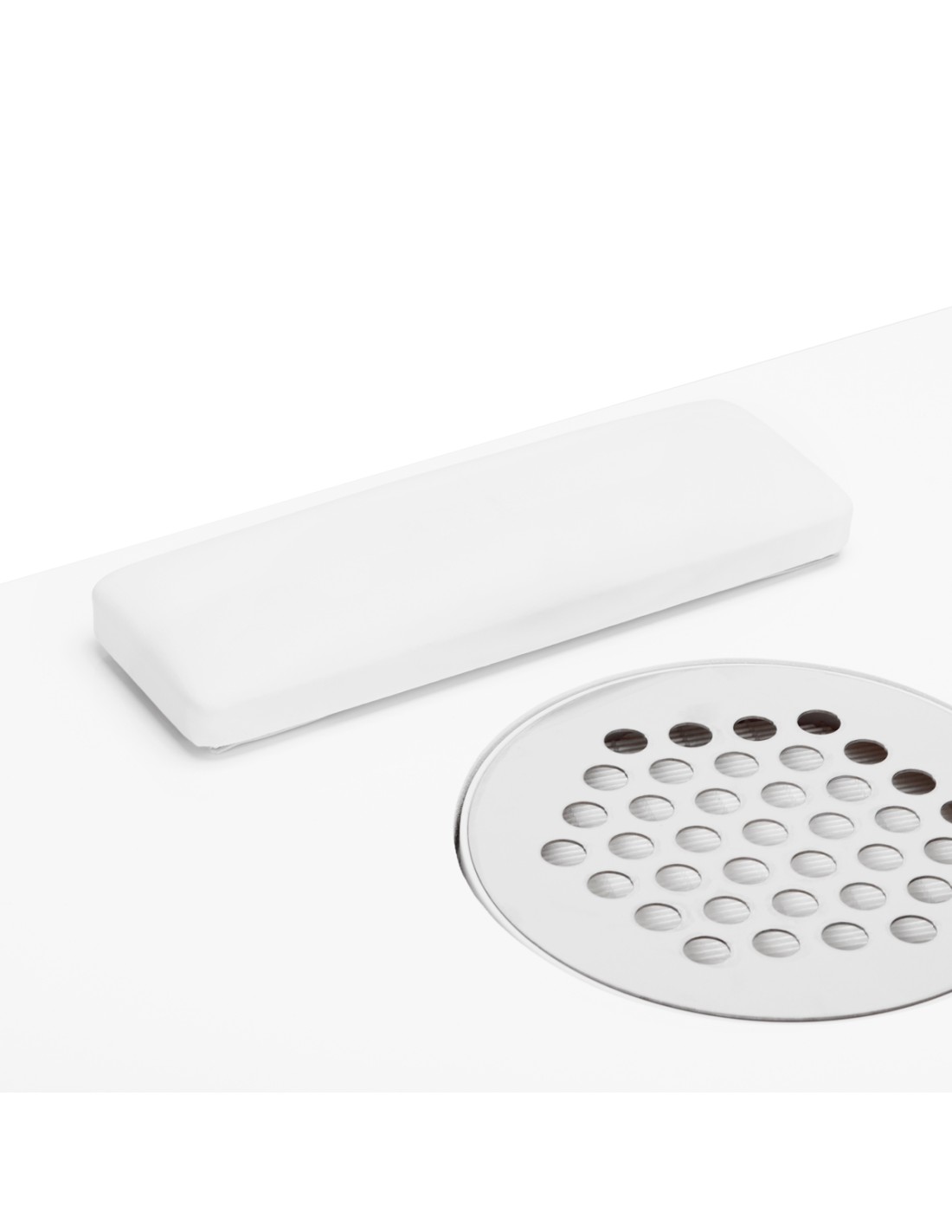 L'innovativo assorbitore di polvere a cassetta integrato nel piano del tavolo migliora notevolmente il comfort e l'igiene del lavoro, rimuovendo efficacemente la polvere generata durante i trattamenti cosmetici come la manicure. Grazie a questo dispositivo, l'aria del salone rimane pulita e l'area di lavoro priva di contaminazioni, aumentando la sicurezza sia per l'estetista che per i clienti. L'assorbitore di polvere è facile da usare e da mantenere, il che ne aumenta la funzionalità. È possibile acquistare un filtro a cartuccia di ricambio per l'assorbitore (SKU 132085).