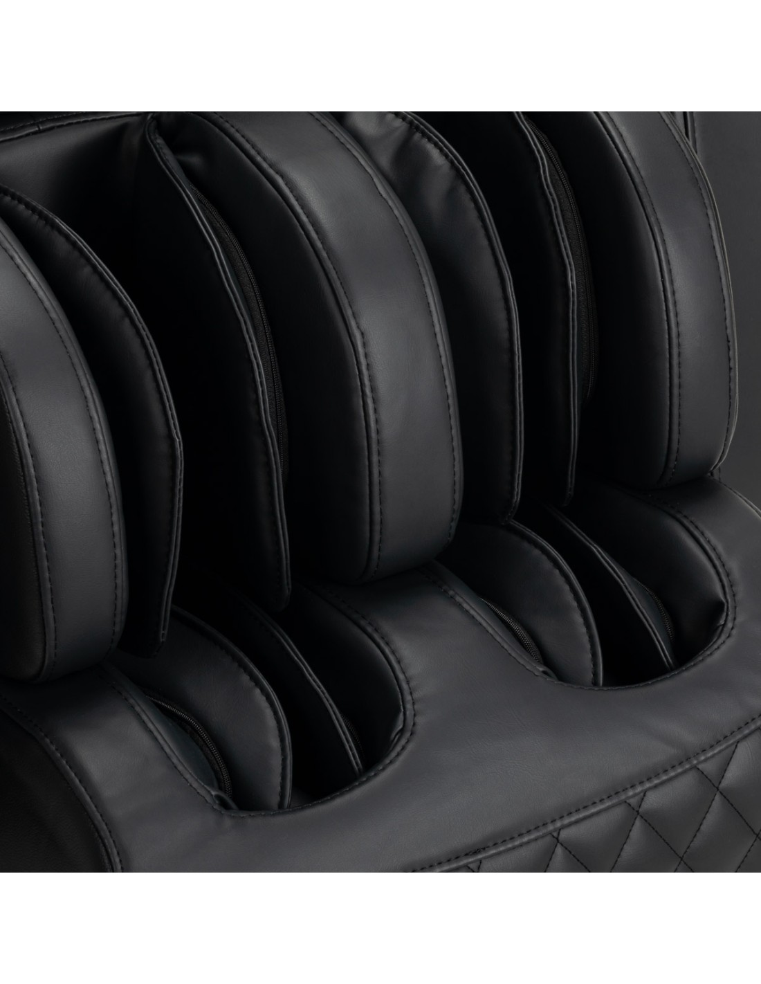 Un eccellente complemento al massaggio meccanico della testa è il massaggio a compressione con cuscini d'aria, che fornisce il cosiddetto drenaggio linfatico. Il movimento pulsante degli airbag nella zona dei piedi, dei polpacci, dei glutei, delle braccia e delle spalle regola il flusso linfatico, facilita il processo di disintossicazione e migliora la circolazione sanguigna. In questo modo, la pressione sanguigna si abbassa, i muscoli si ossigenano meglio e l'organismo si libera più facilmente delle tossine. Questo trattamento elimina le tensioni e offre un piacevole sollievo per il resto della giornata. L'attività dei cuscini può essere regolata sul pannello di controllo.