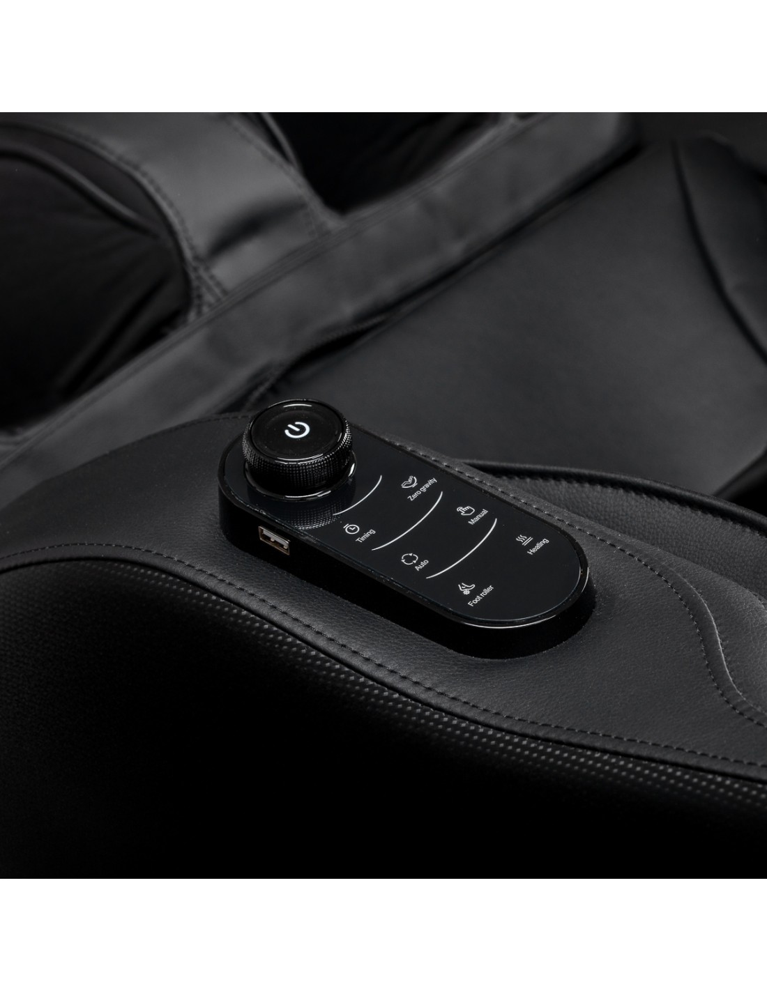Per una maggiore comodità, la poltrona è dotata di un set aggiuntivo di pulsanti di comando situati sul bracciolo sinistro. Il telecomando integrato garantisce un rapido accesso alle funzioni più importanti senza dover ricorrere al pannello principale. In questo modo l'utente può facilmente cambiare il tipo di massaggio, avviare il massaggio ai piedi, attivare la funzione di riscaldamento e la funzione Zero Gravity, che consente di controllare completamente il comfort e l'intensità del relax in qualsiasi momento.