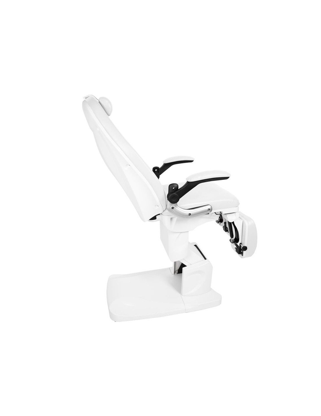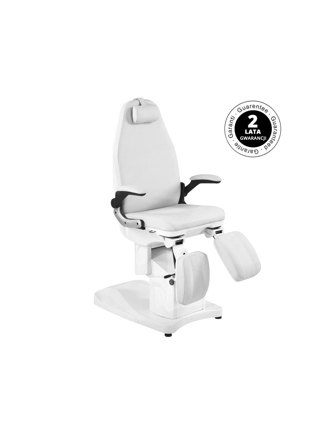 Una moderna poltrona estetica, che offre comfort durante il trattamento, non solo per i pazienti ma anche per chi lo esegue. Ideale per gli interventi di chirurgia podologica. Dotata di motori elettrici per una regolazione rapida e confortevole della poltrona. I poggiapiedi si estendono lateralmente di 90°.°. La poltrona è robusta e molto stabile. I braccioli rialzati facilitano la seduta del cliente. I poggiapiedi regolabili consentono inoltre di adattare la sedia alle esigenze individuali. Rivestimento in ecopelle di alta qualità. Sedute disponibili in un'ampia gamma di colori. Design moderno e funzionalità in un unico prodotto. La foto mostra un modello in bianco.