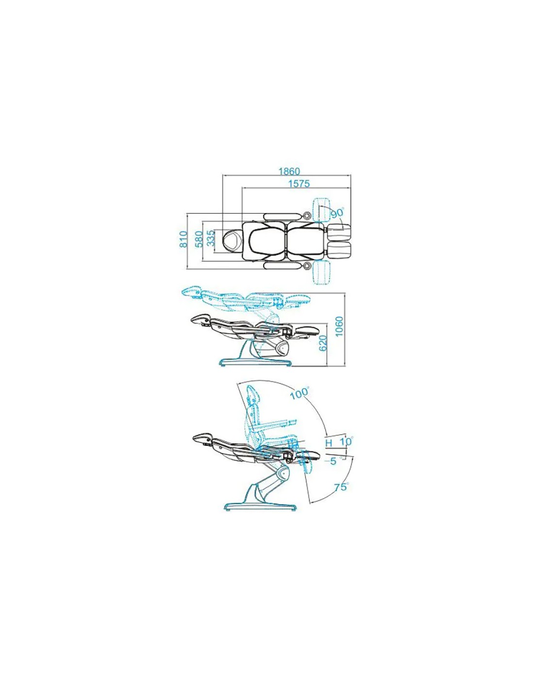L'ampia gamma di regolazioni elettriche verso l'alto e verso il basso consente di adattare l'altezza della poltrona all'altezza della persona che esegue il trattamento e al tipo di trattamento.