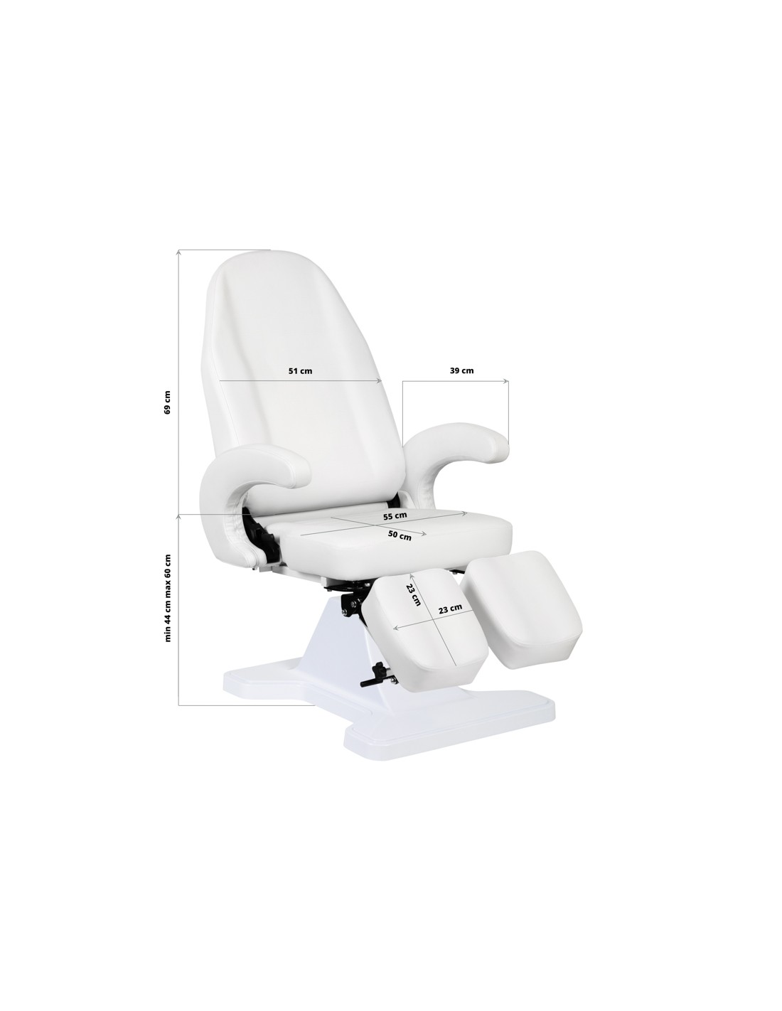 Una poltrona cosmetica moderna, che offre comfort durante il trattamento, non solo per i pazienti ma anche per chi lo esegue. La poltrona è robusta e molto stabile. I poggiapiedi regolabili consentono di adattare ulteriormente la poltrona alle esigenze individuali. Il rivestimento è in ecopelle di alta qualità. Design moderno e funzionalità in un unico prodotto. Dimensioni della base 76 cm x 60 cm