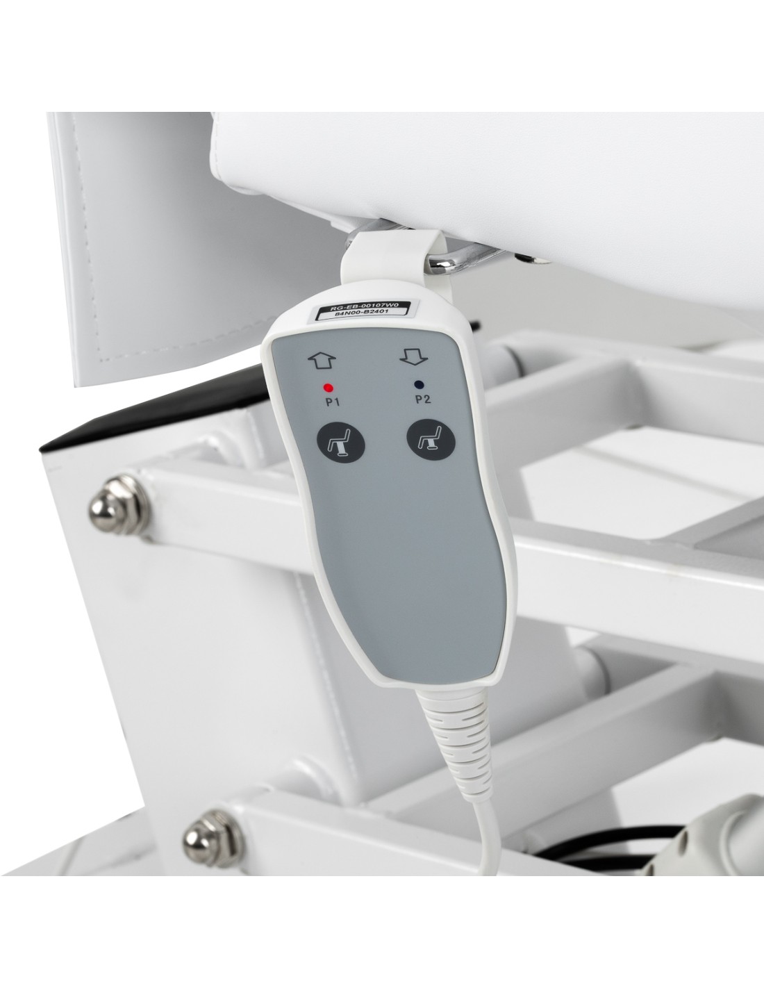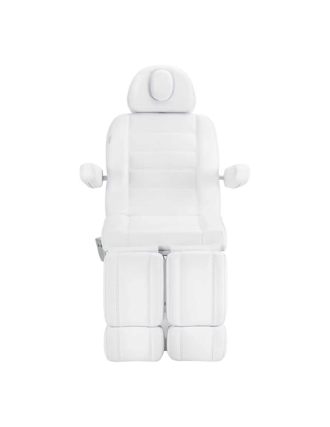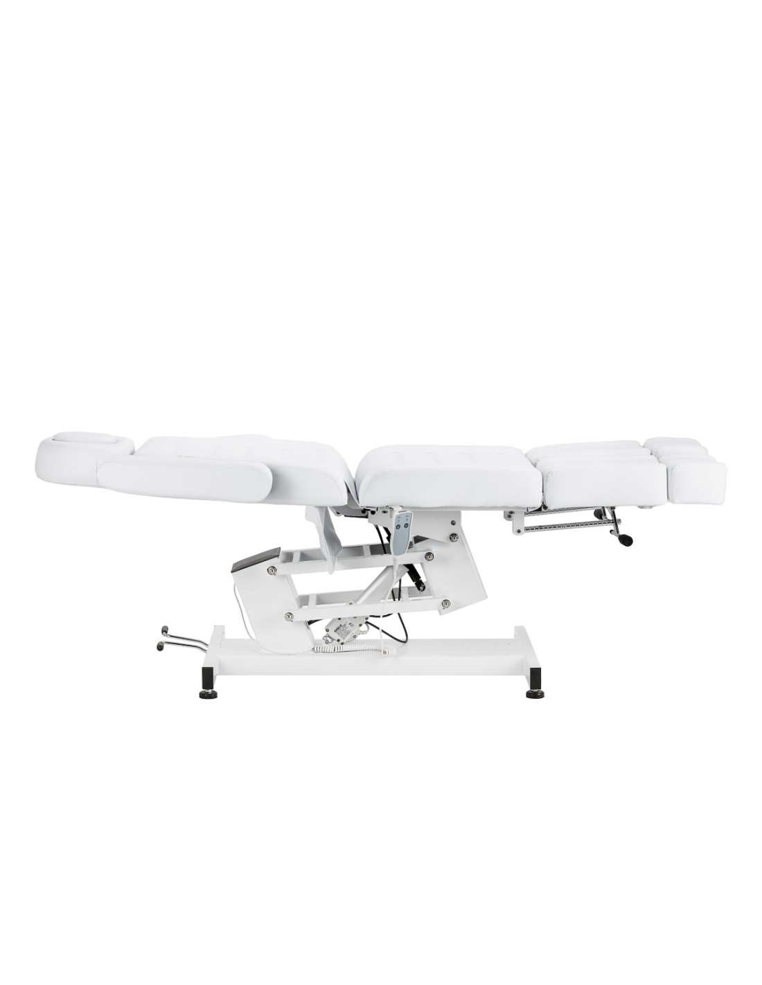 La poltrona elettrica per trattamenti estetici Azzurro 706 Pedi è una soluzione moderna progettata appositamente per i podologi. L'uso di un attuatore elettrico e la regolazione manuale dell'inclinazione del poggiapiedi e dello schienale divisi, nonché la funzione di culla, garantiscono un posizionamento preciso dei singoli elementi della poltrona. La struttura si distingue per l'elevata stabilità e la versatilità di utilizzo, grazie alla quale è perfetta per i centri estetici e podologici. Il funzionamento intuitivo e l'ampia gamma di regolazioni consentono di adattare comodamente la poltrona alle esigenze sia del cliente che dell'operatore.