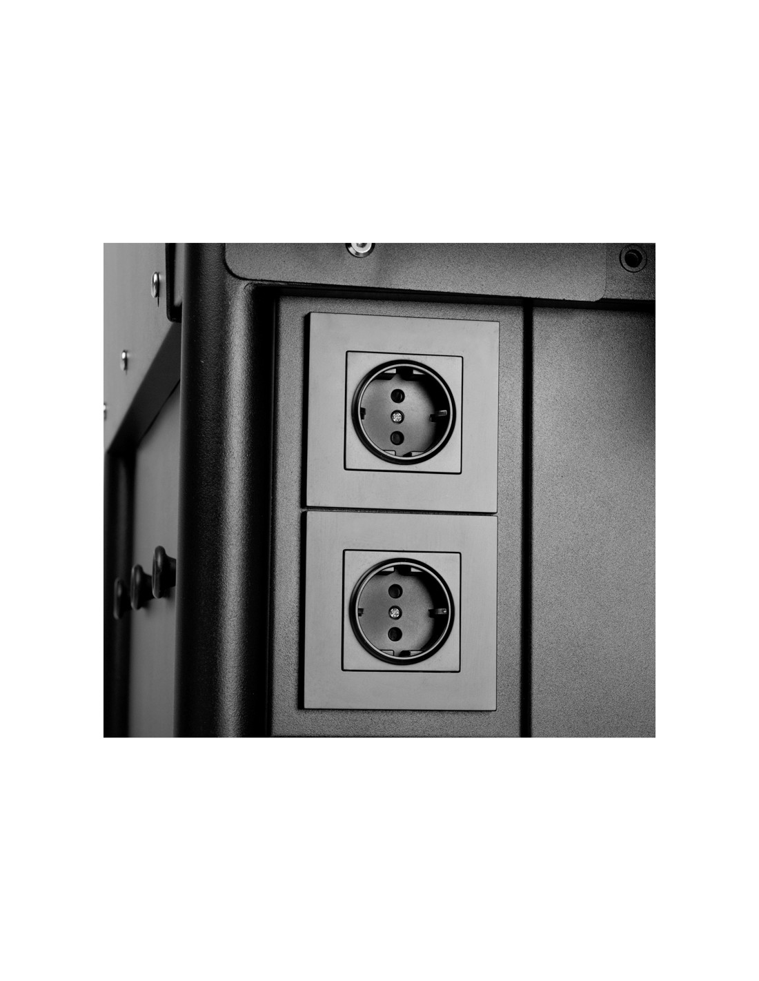 ASYSTOR PRO INK 701 per riporre l'attrezzatura per tatuaggi. Grazie alla sua robusta struttura in acciaio, garantisce una lunga durata. I robusti cassetti sono dotati di maniglie a scomparsa. Il piano in alluminio mantiene la pulizia quando si lavora con i pigmenti. Nella parte anteriore della postazione sono presenti tre cassetti più piccoli e un armadietto grande e spazioso che può contenere attrezzature, accessori e molto altro. L'armadietto e uno dei cassetti piccoli sono inoltre dotati di utensili in acciaio. I cassetti verticali su entrambi i lati sono dotati ciascuno di 2 prese di corrente e su un lato anche di 2 prese USB. Sulla parete posteriore, un organizzatore per i cavi. Tutto ciò che serve durante una sessione è organizzato in un unico posto. Le rotelle gommate (con freno) consentono di spostare facilmente il mobile nonostante il suo peso.
