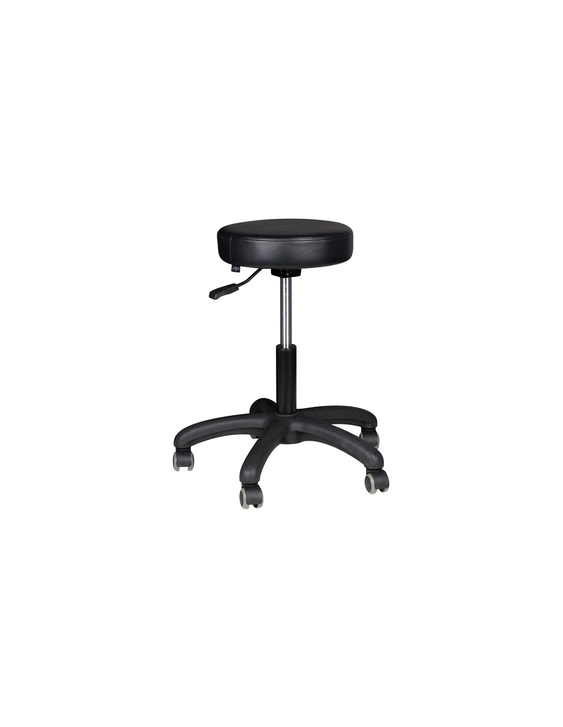 Comodo sgabello cosmetico, stabile su una base a cinque stelle, con rotelle gommate. Un elemento d'arredo indispensabile in uno studio estetico.