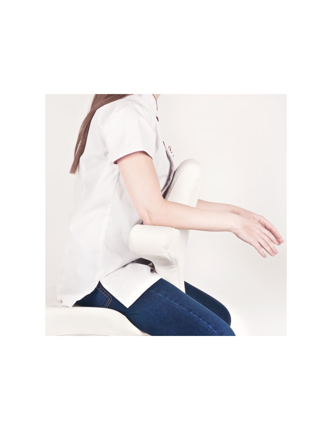 L'altezza regolabile da 55 a 75 cm consente di assumere la posizione corretta durante le prestazioni. Le linguette laterali consentono di sostenere le braccia quando si è seduti all'indietro sulla poltrona, soprattutto durante servizi come il massaggio o il make-up. Un meccanismo di rotazione completa che rende il lavoro più efficiente e confortevole. La poltrona dispone anche di una funzione di bloccaggio della culla, che consente di posizionare il corpo in modo ergonomico durante il lavoro. L 'estensione del sedile può essere regolata anche manualmente.