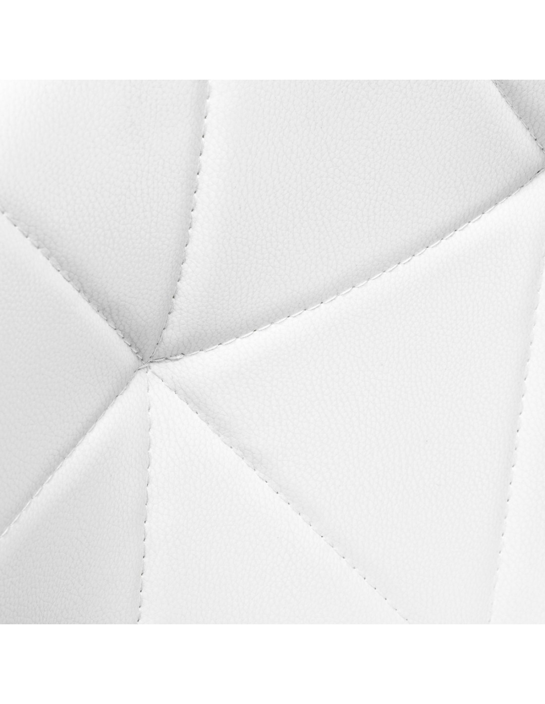 La base a cinque stelle nei toni dell'oro è dotata di rotelle in plastica che garantiscono una notevole mobilità, consentendo di spostare liberamente il mobile in ufficio. La seduta dello sgabello è rivestita in similpelle piacevole al tatto in un'elegante tonalità di bianco. Il materiale utilizzato garantisce durata, resistenza all'umidità e facilità di pulizia. Il tutto è completato da eleganti cuciture che sottolineano il design moderno.