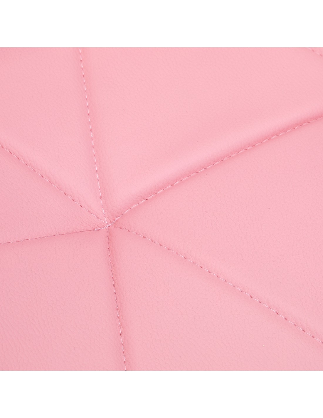 La base a cinque razze in tonalità cromata è dotata di rotelle gommate che garantiscono una notevole mobilità, consentendo di spostare liberamente il mobile in ufficio. La seduta dello sgabello è rivestita in similpelle piacevole al tatto in un'elegante tonalità di rosa. Il materiale utilizzato garantisce durata, resistenza all'umidità e facilità di pulizia. Il tutto è completato da eleganti cuciture che sottolineano il design moderno.