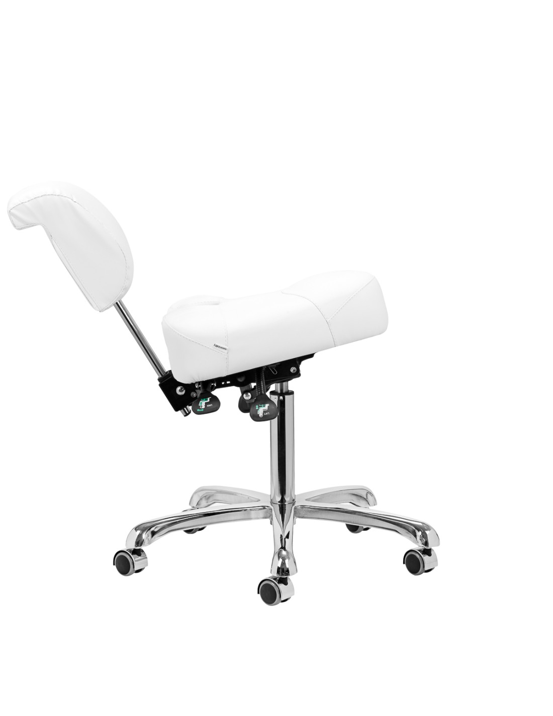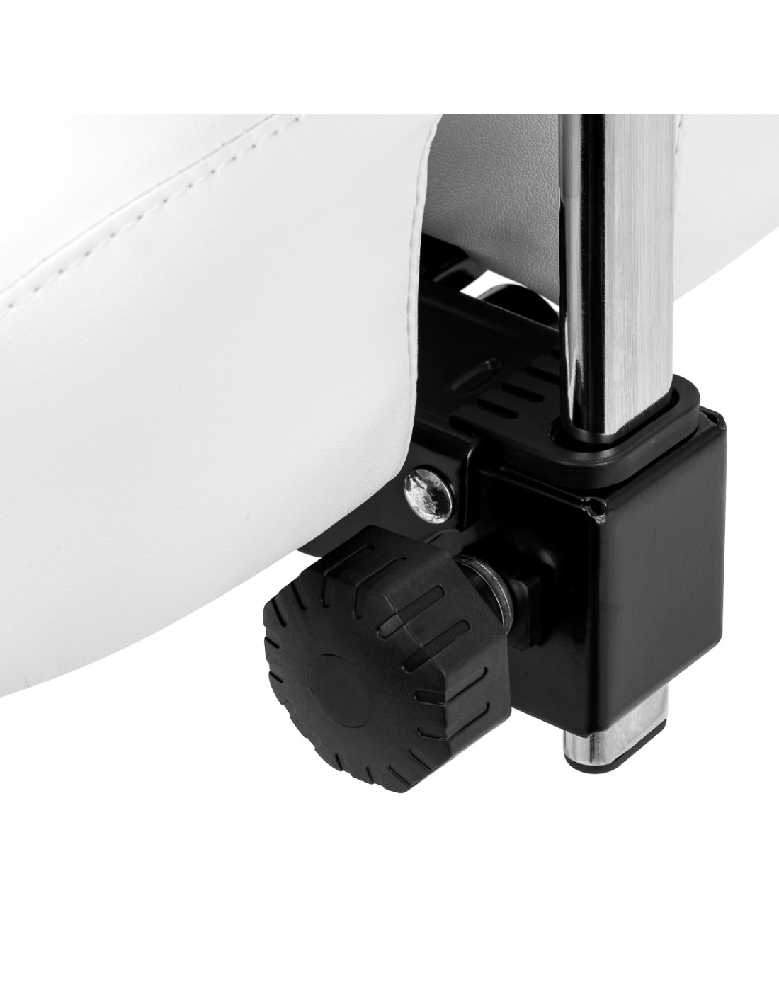 La solida base a cinque stelle garantisce un'eccezionale stabilità dello sgabello, anche in caso di uso intensivo. Le rotelle gommate consentono di spostarlo facilmente e senza problemi, senza danneggiare il pavimento. La sedia si distingue per la sua durata e stabilità e il suo rivestimento in finta pelle di alta qualità nei toni del bianco è resistente all'umidità e facile da pulire, il che aumenta ulteriormente il comfort di utilizzo.