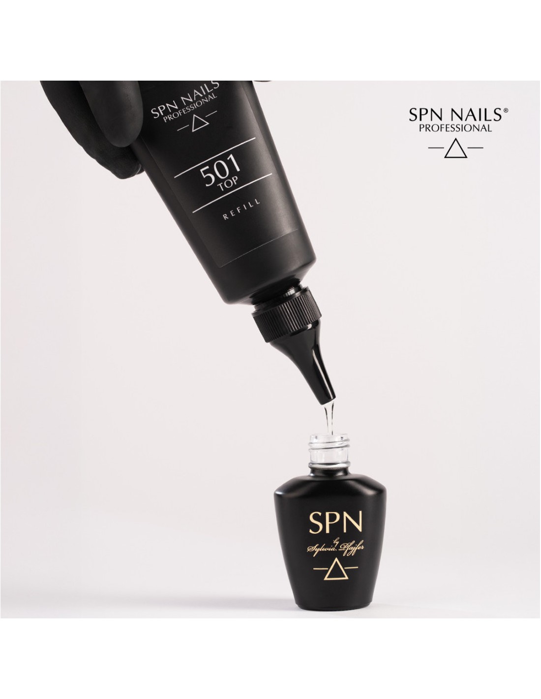 Top Coat soak off con stato di dispersione per lucidare e sigillare rivestimenti artificiali per le unghie. Sorprende per la sua resistenza e brillantezza nel tempo. Finish per unghie 501 non solo dona alle tue unghie una lucentezza spettacolare ma garantisce la durata fino a 5 settimane e massima protezione contro i fattori esterni. La sua innovattiva formula HEMA FREE e VEGAN è delicata er la salute. Lo strato di inibizione che rilascia va rimosso con uno sgrassatore.