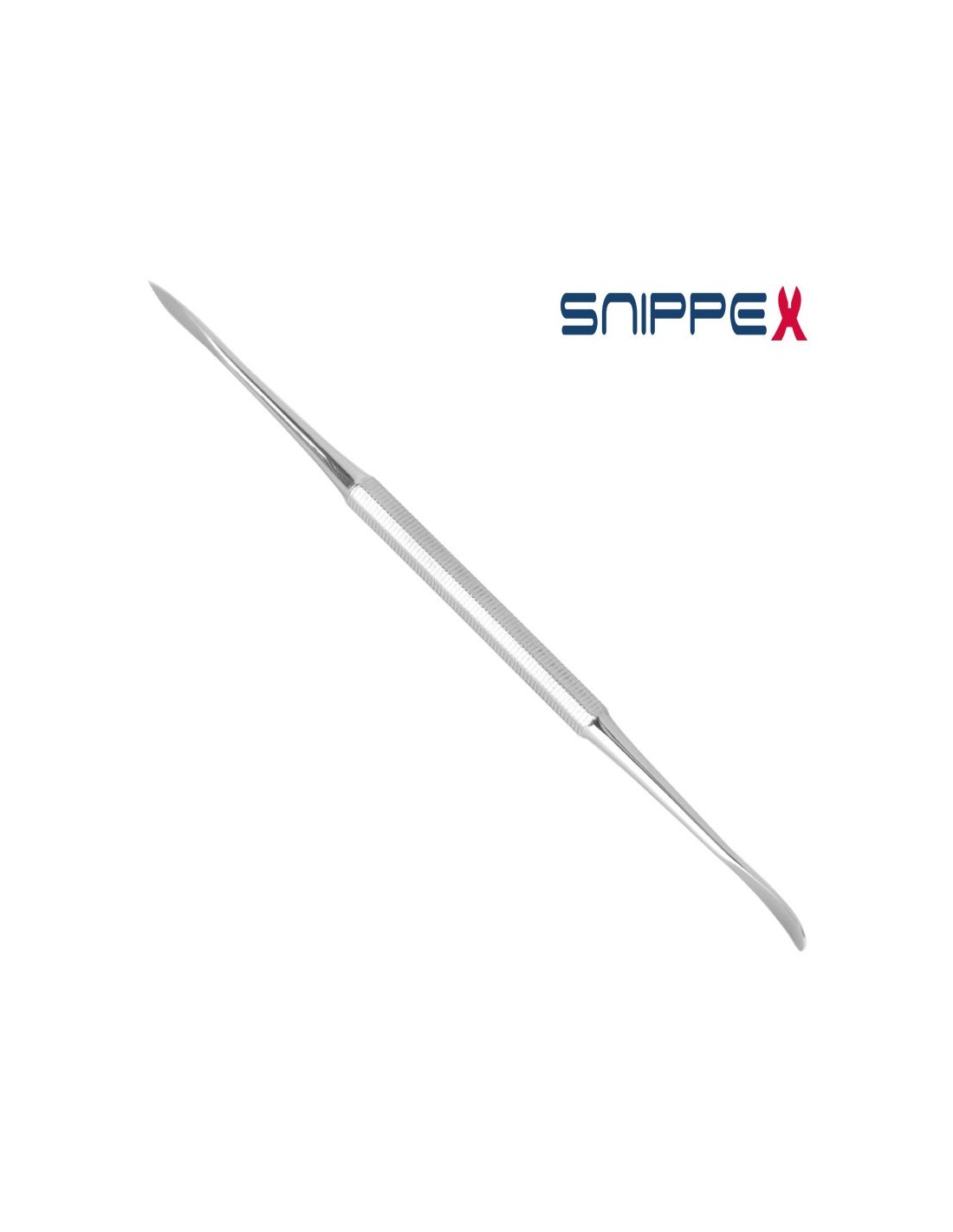 Spazzola per manicure e pedicure a doppia faccia in acciaio inossidabile, molto ben sagomata sulla mano.  La spazzola rimuove perfettamente le cuticole e le membrane dalla lamina ungueale.  La spazzola può essere sterilizzata in uno sterilizzatore a sfera.