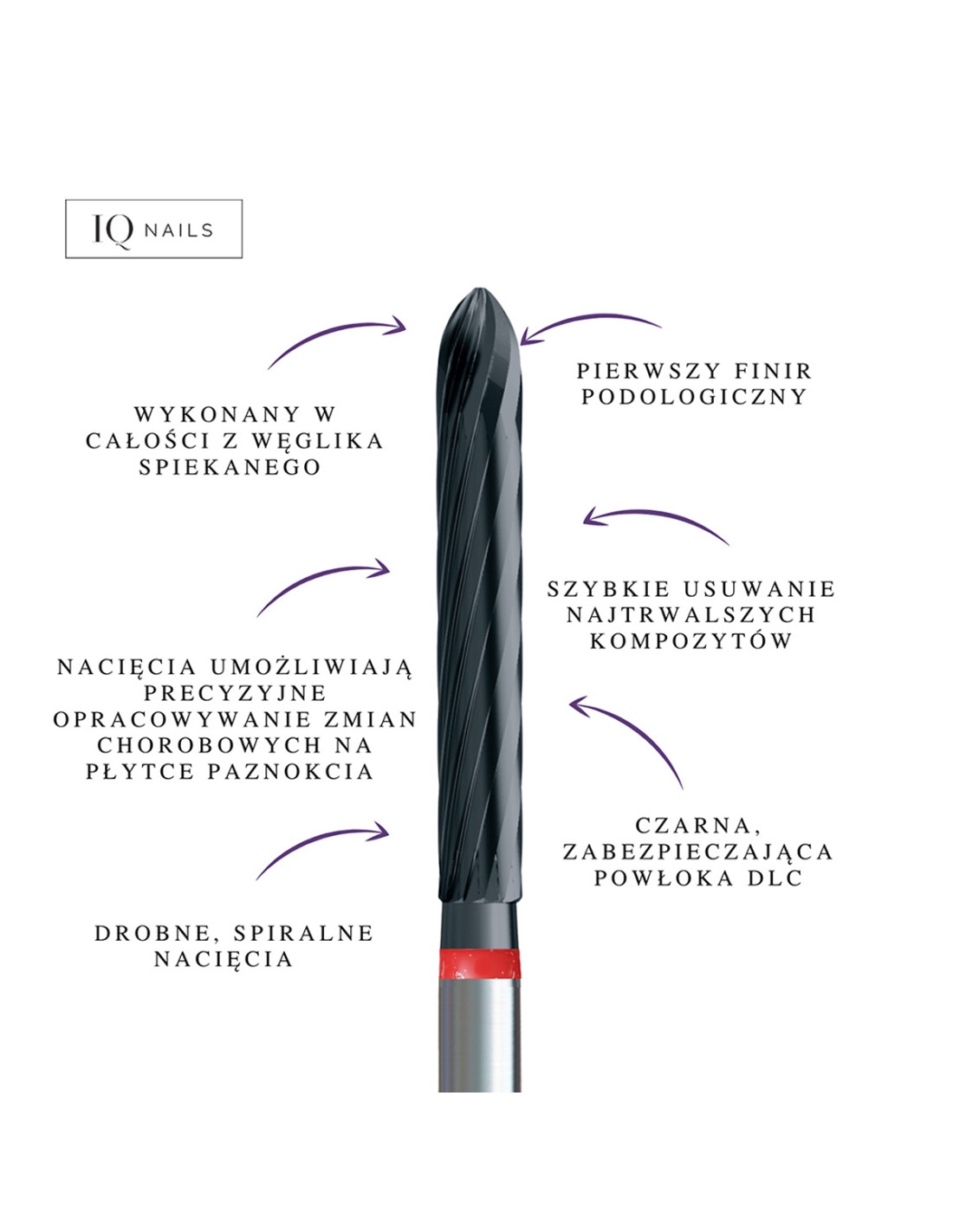 La fresa podologica Finir di Famous Podiatrist è dotata di sottili incisioni a spirale e di una speciale angolazione delle incisioni che consente di rimuovere entrambi i materiali podologici.