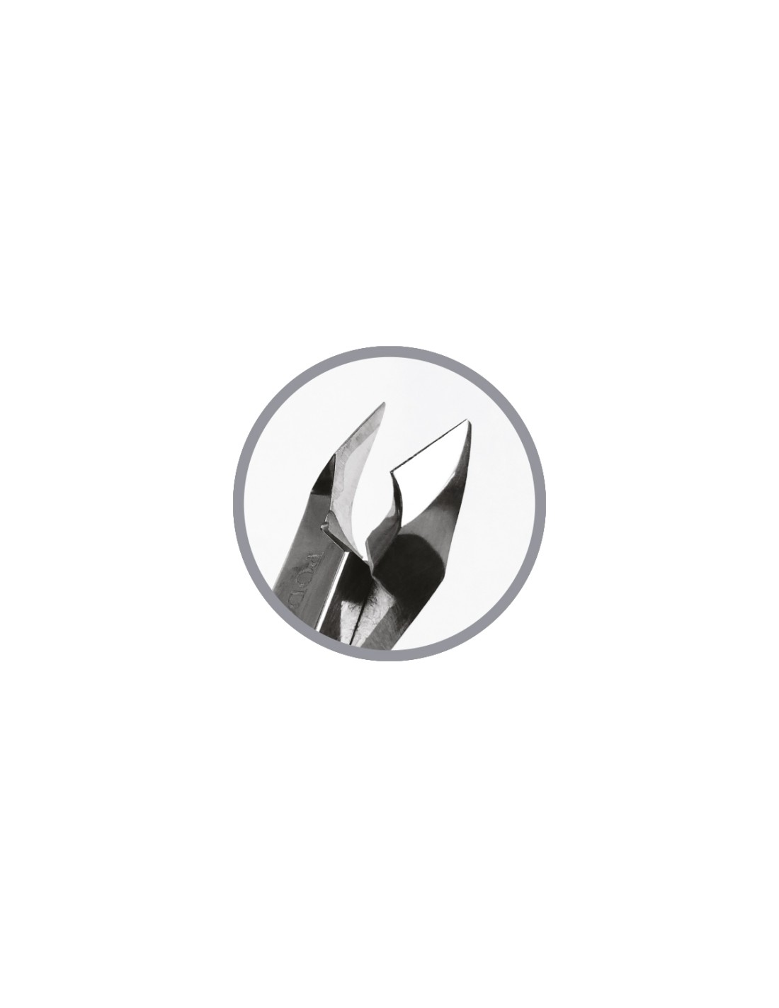 Il rimuovi cuticole e il rimuovi cuticole subungueali profonde sono realizzati in acciaio inossidabile di altissima qualità. Si tratta di uno strumento robusto e preciso con una superficie di taglio affilata (0,9 cm). Lo speciale design della lama rende la pinza eccellente sia per il lavoro con i piedi che con le mani. Il modello è dotato di un meccanismo di sicurezza a doppia molla. L'utensile può essere sterilizzato in autoclave. Le pinze sono particolarmente indicate per l'uso in chirurgia estetica e podologica.