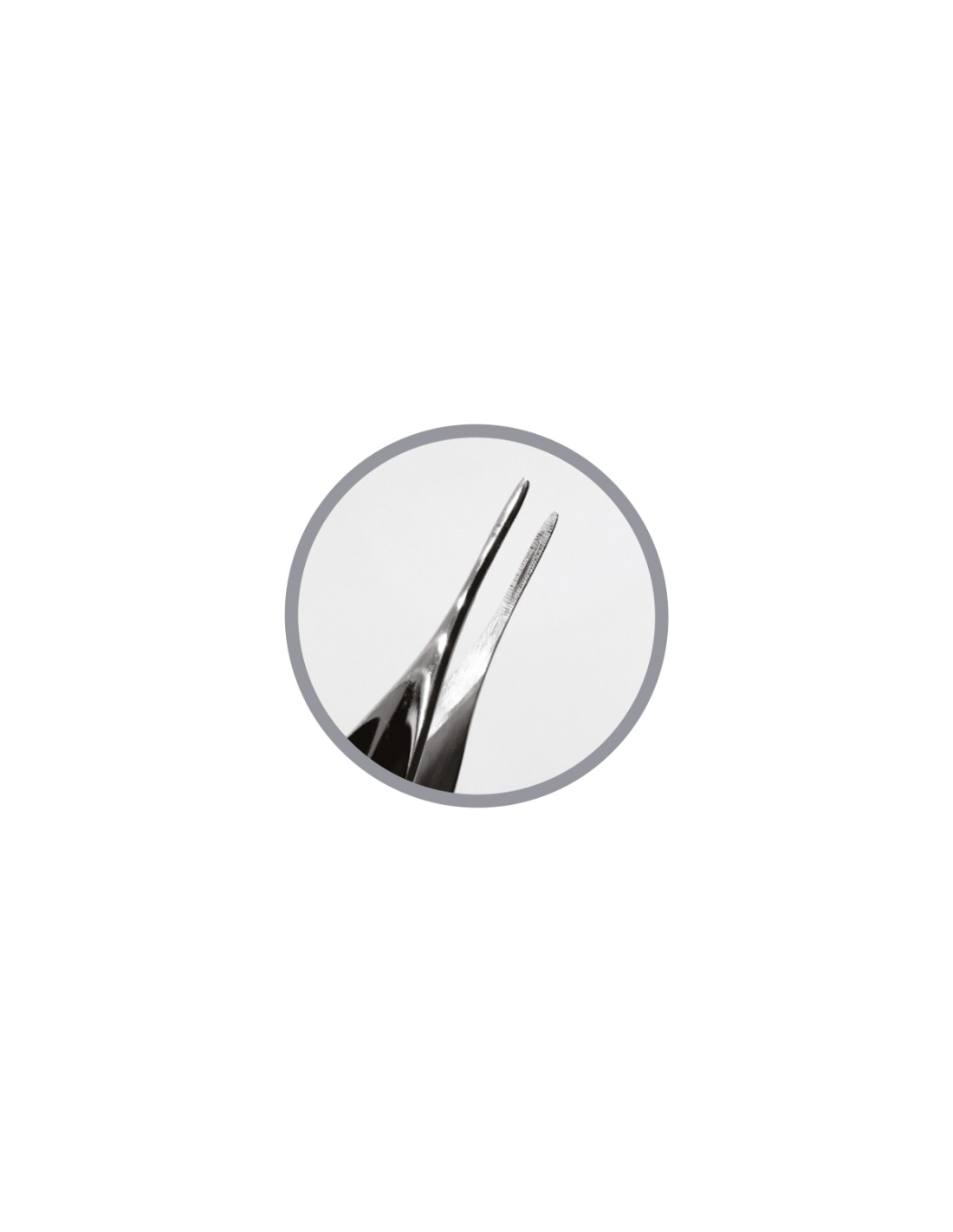 Le pinzette podologiche M sono state realizzate in acciaio inossidabile di altissima qualità. Lo speciale design della lama seghettata e della punta appuntita consente di afferrare con precisione le parti più sottili. Le dimensioni della pinzetta consentono di utilizzare una grande forza nel processo di pulizia delle aree del fusto dell'unghia e delle aree sotto la lamina ungueale. L'eccezionale forza delle pinzette facilita l'uso dello strumento quando si applicano, ad esempio, frammenti di ricostruzione della lamina ungueale. Le pinzette possono essere sterilizzate in autoclave.
