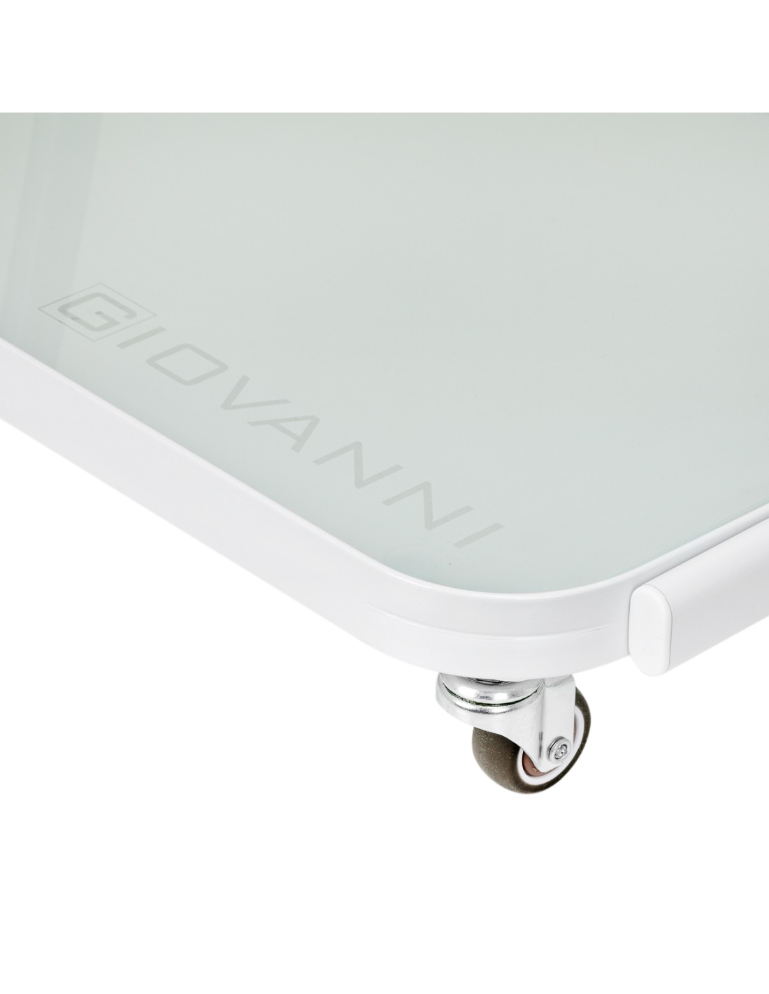 Ildesign semplice, la struttura in resistente alluminio bianco e i ripiani in vetro rendono il tavolo esteticamente gradevole e facile da mantenere pulito. Le quattro rotelle consentono di spostarlo liberamente, facilitando notevolmente il lavoro in salotto, mentre i materiali robusti garantiscono resistenza e stabilità nel tempo. L'elegante finitura e l'interessante struttura inclinata conferiscono un aspetto unico, migliorando l'estetica di qualsiasi interno.