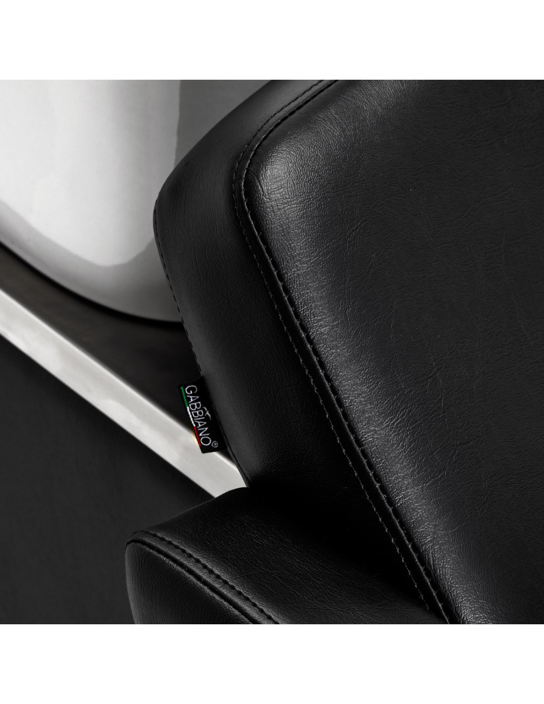 La poltrona, opportunamente profilata e imbottita di schiuma resistente , offre un adeguato supporto lombare e, di conseguenza, un elevato comfort di utilizzo. I braccioli dalla forma interessante consentono di posizionare correttamente le spalle del cliente. Il rivestimento in pelle sintetica piacevole al tatto, nei toni del nero , garantisce una lunga durata e una facile pulizia. Il design originale ed elegante dell'autolavaggio conferisce agli interni un'espressione unica. Le gambe aggiungono stabilità e sottolineano in modo sottile il carattere elegante dell 'autolavaggio. Sono inclusi accessori completi in tonalità di nero, tra cui un miscelatore, una doccetta e tubi flessibili dedicati per garantire un set completo di strumenti per il lavoro.