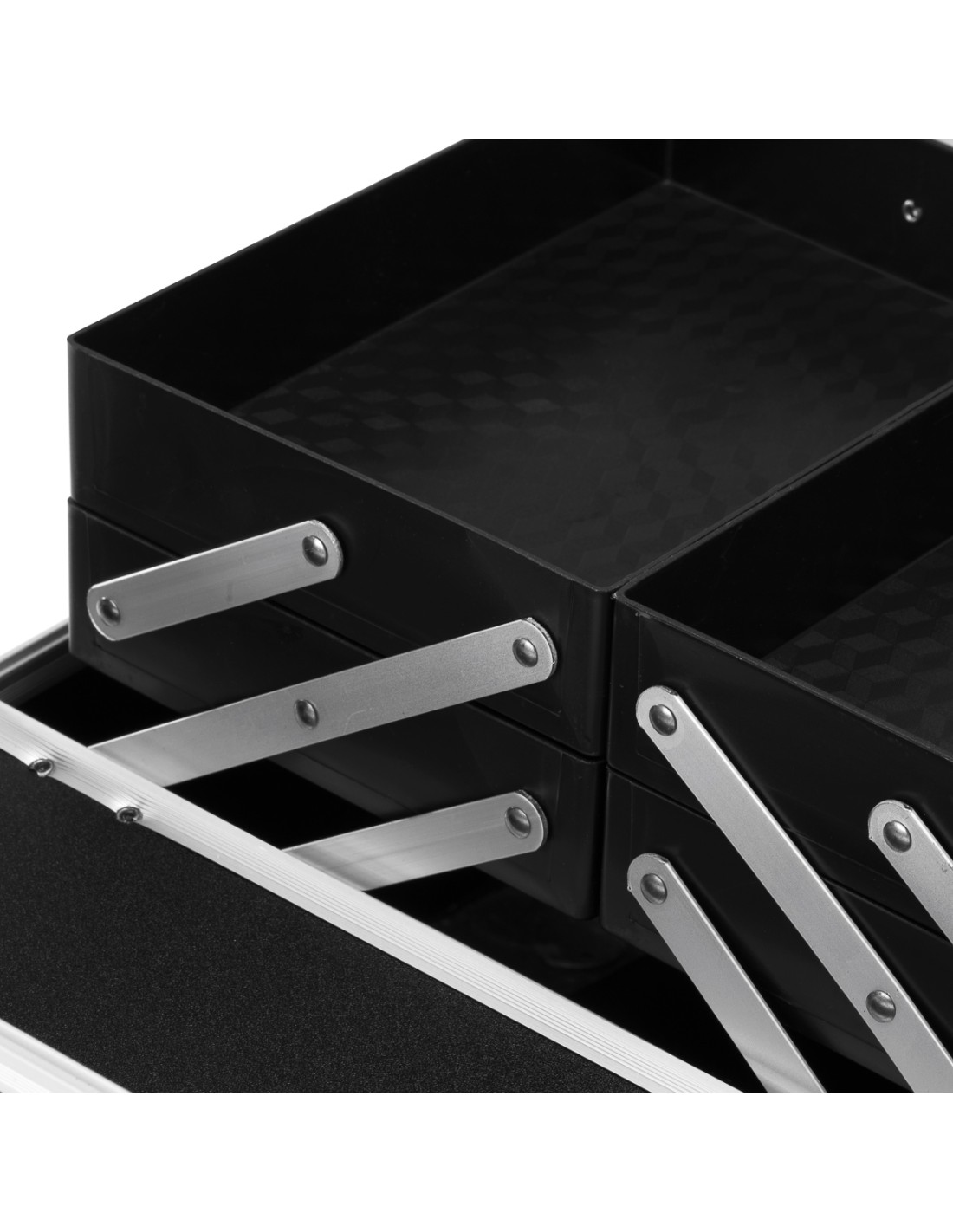 L'Elegant Trunk 44 combina funzionalità e stile per una comoda organizzazione, una conservazione sicura e un rapido accesso agli strumenti essenziali. È perfetto per l'uso quotidiano, soprattutto per gli stilisti in movimento. L'interno spazioso con ripiani estraibili consente di organizzare gli accessori, mentre l'ampio scomparto ospita il cutter, i preparati o altri oggetti essenziali.