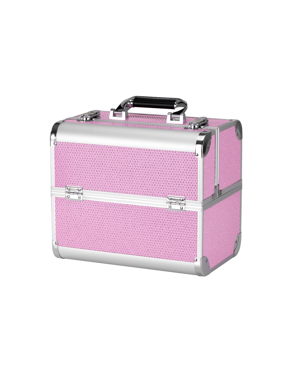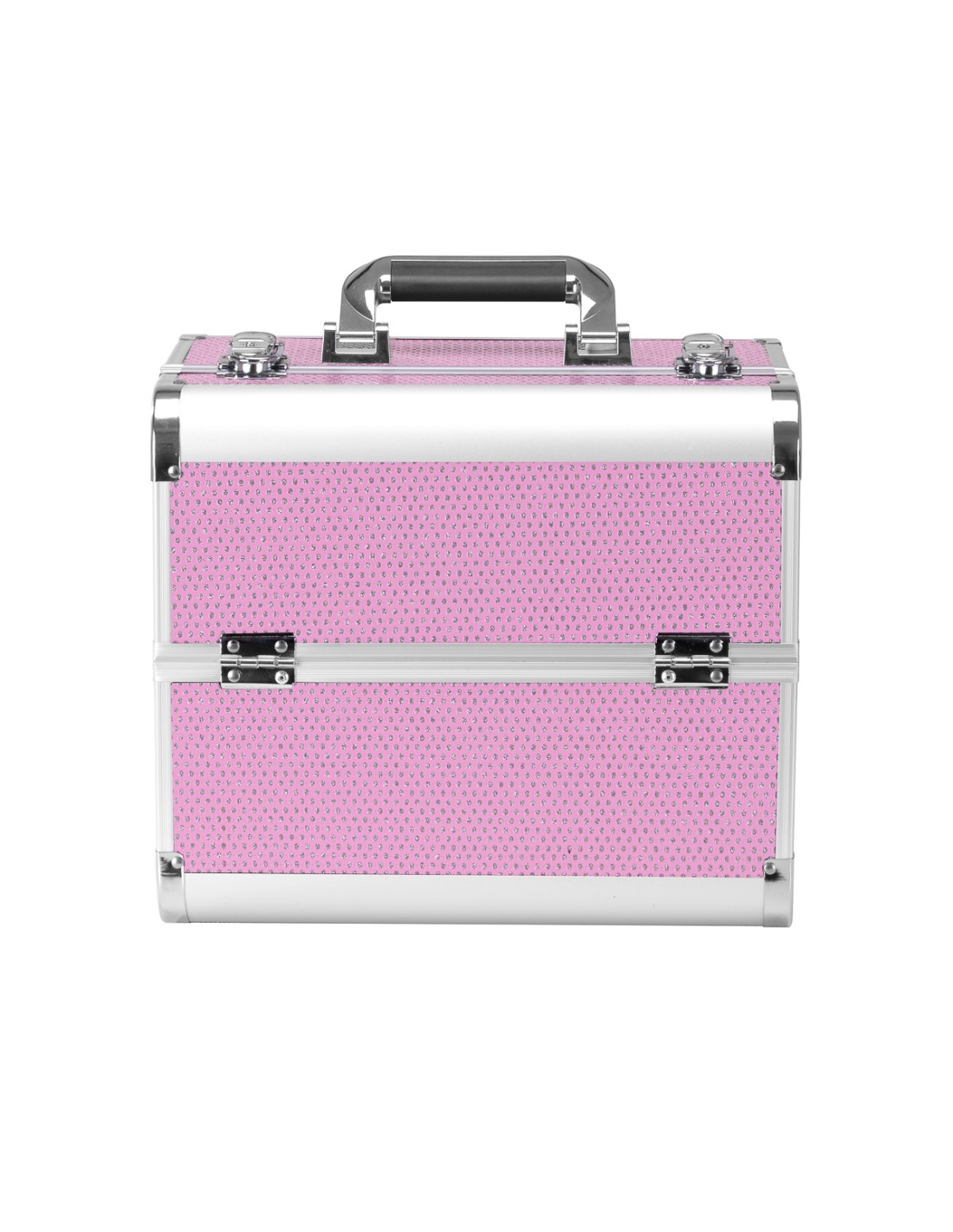 Il design moderno nei toni del rosa con accenti glitterati aggiunge un tocco di eleganza. La maniglia ne facilita il trasporto, particolarmente importante per gli stilisti in movimento. Realizzata con materiali robusti e resistenti ai danni per un comfort quotidiano. Una robusta chiusura a scatto con chiave garantisce la protezione del contenuto e la struttura leggera e resistente rende il baule facile da trasportare.