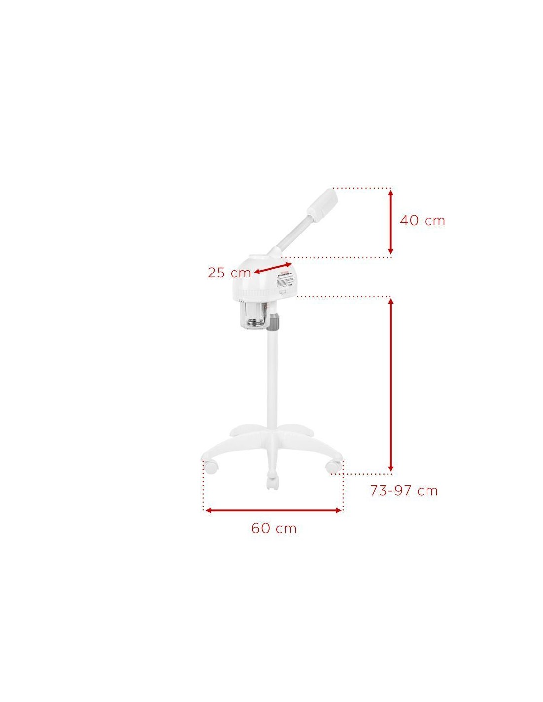 Wapozone multifunzionale con vapore caldo e ozono. Il vapozone è montato su un supporto regolabile in altezza. Questo dispositivo è un'attrezzatura essenziale in ogni studio estetico. Cosa ci offre il wapozone: Disinfetta la pelle Apre i pori  Il vapore penetra nei pori e pulisce le impurità come gli accumuli di grasso, i residui di vari tipi di cosmetici. Il vapore aiuta la pelle a rilasciare le tossine Ha un effetto ammorbidente sulla pelle  Accelera la circolazione sanguigna,  idrata e rinfresca la pelle,  migliora il metabolismo Ripristina l'acidità naturale della pelle