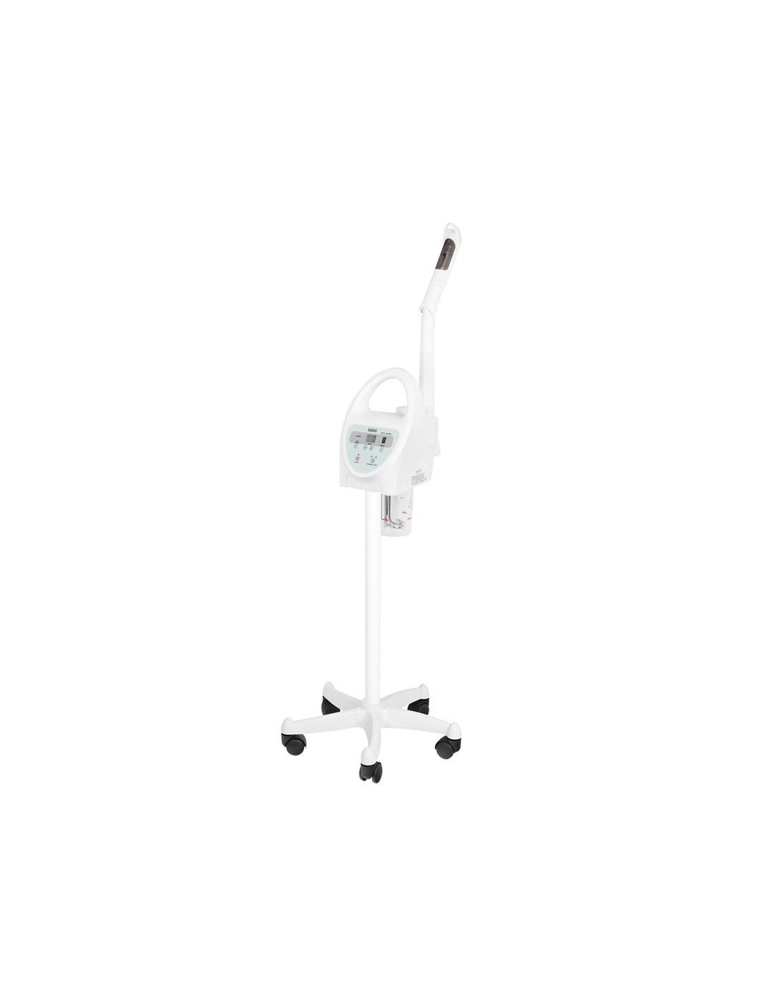 Vaposone multifunzionale con vapore caldo, aromaterapia e ozono e intensità del vapore regolabile. L'ugello del vaposone è dotato di una levetta che ci permette di dirigere il getto di vapore verso il cliente. Il vaposone è montato su un supporto. Questo dispositivo è indispensabile in ogni salone di bellezza. Dati tecnici: Treppiede a 5 bracci 5 ruote in plastica, altezza del cavalletto 78cm lunghezza ugello 67cm potenza 850 capacità 1l dimensioni della confezione: 80*38*48cm Garanzia: 2 anni