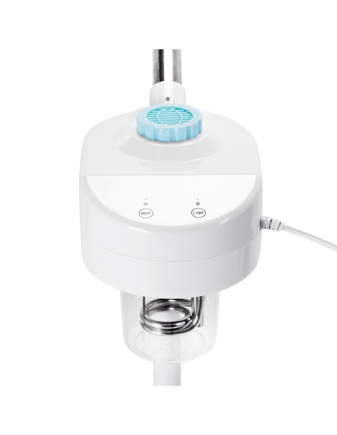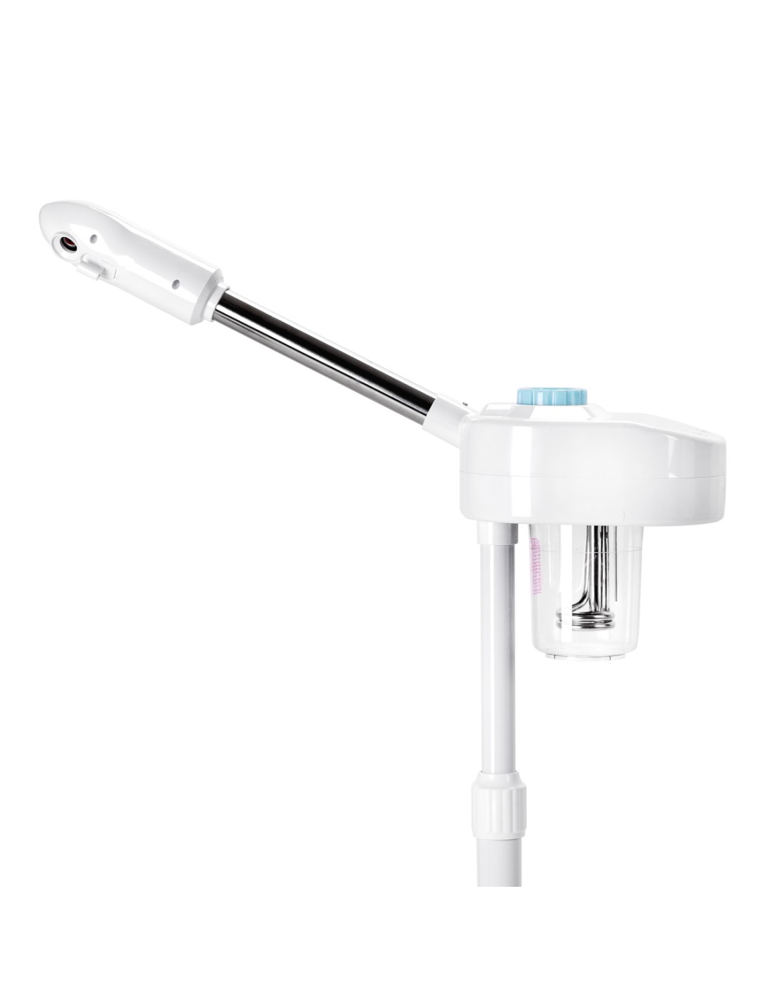 Il vaposon è realizzato in plastica resistente nei toni del bianco, che rende il dispositivo facile da mantenere pulito. Il supporto è regolabile in altezza da 44,5 a 69 cm, consentendo di posizionare l'apparecchiatura al livello giusto per garantire il comfort della persona che esegue il trattamento. L 'ugello del vaposone può essere ruotato, aumentando la gamma di impostazioni possibili. La base a cinque stelle con rotelle migliora la mobilità, facilitando lo spostamento dell'unità in tutta libertà.