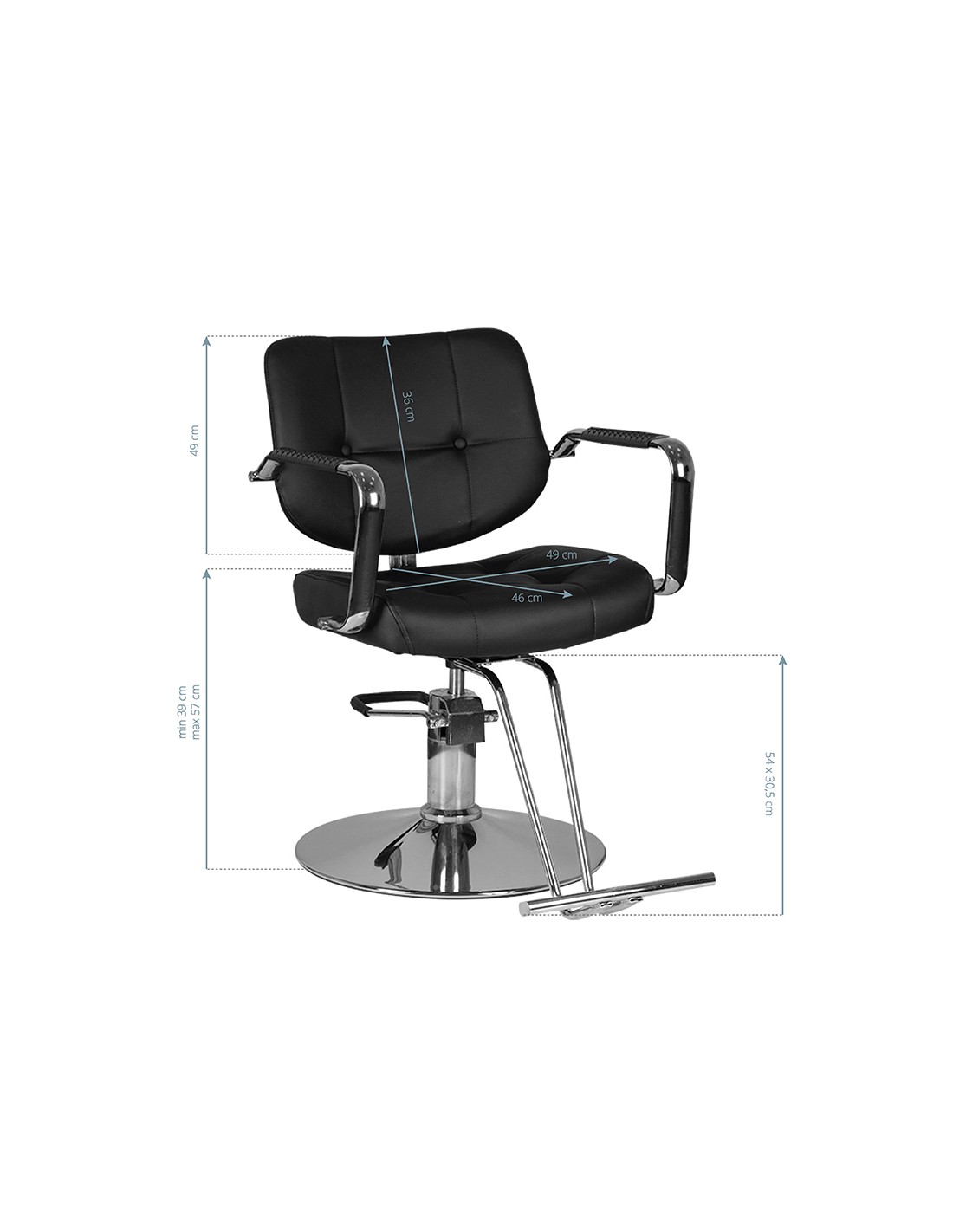 Una poltrona per parrucchieri dal design moderno. Molto confortevole, ideale per i saloni moderni. . Appositamente sagomata per garantire una posizione confortevole al cliente durante il trattamento. Regolabile sul piano verticale. Molto stabile e solida. Rivestimento in ecopelle di alta qualità. Colore nero. Dimensioni della confezione: 61 x 61 x 60 cm